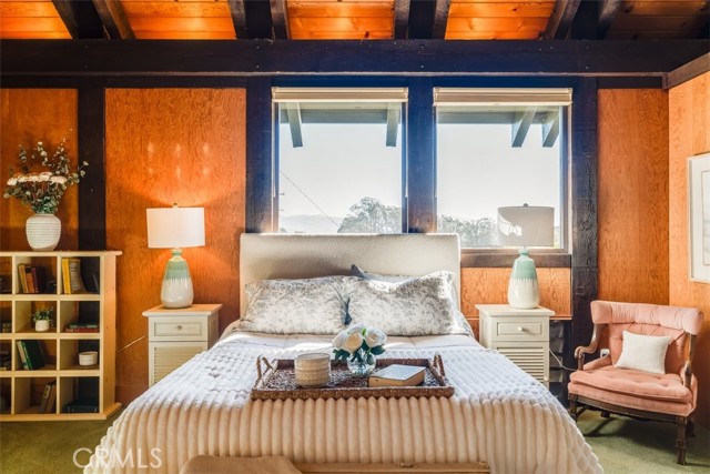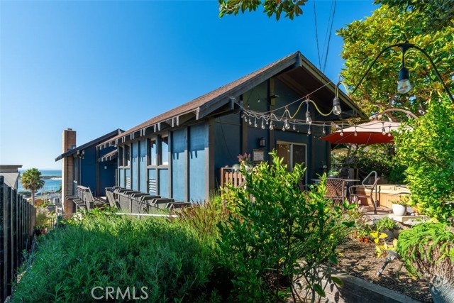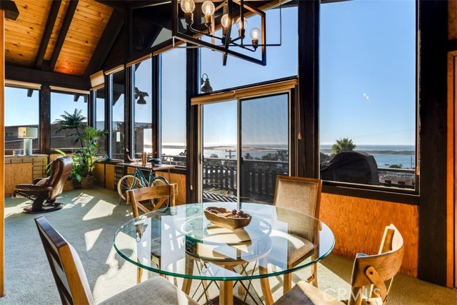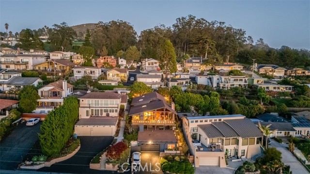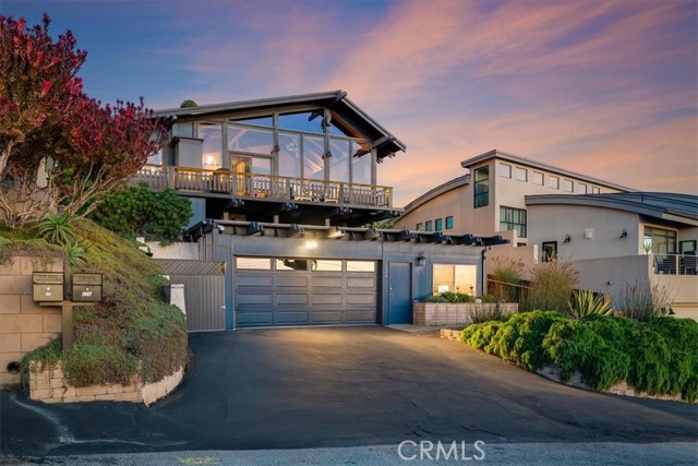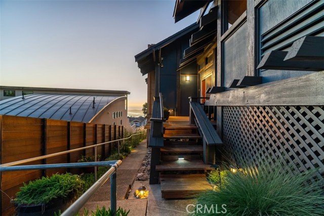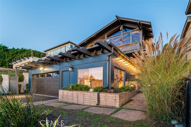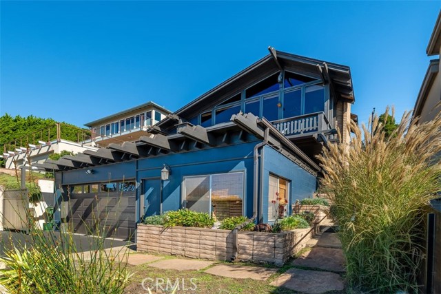 Perched in the highly desirable Morro Bay Heights, this exceptional residence captures 180-degree panoramic views of the Pacific Ocean and the bay. Blending elements of Mid-Century Modern architecture with refined Japanese-inspired design, this home is a rare work of art that embodies coastal elegance, tranquility, and sustainability. The thoughtfully designed floor plan showcases open, light-filled living spaces with expansive windows framing breathtaking views from nearly every room. The main living area features clean architectural lines, warm wood accents, and a seamless flow to an ocean-view deck ideal for relaxing or entertaining against the backdrop of Morro Bay’s ever-changing scenery. A striking centerpiece of the living space is a custom Stearman Navy trainer propeller fan, an artful nod to both craftsmanship and aviation history, adding a unique touch of character and distinction. The primary suite offers a peaceful retreat with commanding ocean vistas, private access to outdoor spaces, and a luxurious en-suite bath. Bonus room extended from primary bedroom perfect for an office or craft room with ocean views. One of the three bedrooms is located on the lower level and features its own private entrance and a full en-suite bathroom, offering excellent flexibility for guests, multi-generational living, or a separate home office setup. A private elevator connects the two-car garage to the main living level, providing ease and accessibility. Outside, the home is surrounded by meticulously landscaped gardens, front and back, designed for privacy and serenity. The backyard features a hot tub in a secluded, beautifully landscaped setting, surrounded by mature fruit trees that enhance the sense of lush coastal living. Every detail has been carefully curated to harmonize modern architecture with natural surroundings. 226 Bradley Avenue is more than a home—it is a statement of artful living in one of California’s most desirable coastal enclaves.