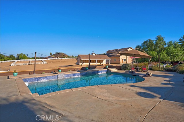 Experience the ultimate in Southern California equestrian luxury living at this exceptional La Cresta estate in Murrieta, CA, offering the perfect blend of land, lifestyle, and privacy on 5.14 fully usable, fenced acres with direct trail access. Enjoy a low tax rate, low-maintenance utilities, and the freedom to create your Southern California equestrian retreat, working ranch, or peaceful homestead farm on this one-of-a-kind La Cresta estate. This stunning Murrieta horse property is designed for multi-generational living and features two single-story residences, ideal for extended family, guests, or rental income. The main residence includes three bedrooms, an office, and a gym/game room, while the second home offers three bedrooms, two baths, and an office. Enjoy resort-style amenities with a solar-heated pool, spa, outdoor kitchen, and panoramic mountain and hill views. Powered by a 62-panel fully owned solar system, the property also includes a 3,498 sq. ft. workshop/RV garage with lift, easily convertible to an equestrian barn or car collector’s space. For the horse enthusiast, this La Cresta equestrian property features a custom two-stall barn with tack and feed rooms, three fenced pastures, a round pen, and room to expand with an arena or additional stables. Located just minutes from award-winning Murrieta schools, shopping, freeway access, and Temecula Wine Country, this luxury ranch home sits in one of Southern California’s most desirable equestrian communities, where Murrieta homes with acreage, guest houses, and mountain views define the best in ranch-style living.