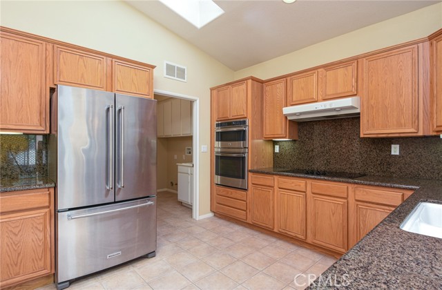 Welcome to The Colony a vibrant guard gated community for residents 55 years and older. Stunning & Spacious 1 story 3 bedroom 2 bath with over 2100 square feet of living space. Double door entry, foyer, great room with high ceilings, skylights, entertainers' kitchen with gas cooktop, wall oven, dishwasher and includes refrigerator! Direct access to the two car garage. Inside laundry room for full size side by side washer / dryer. Primary bedroom is grand with high ceilings, separate soaking tub, shower, dual sinks, walk in closet. 2 additional bedrooms on other side of the home perfect for home office, guests or hobby room. Low maintenance private back yard with covered patio is perfect for year round enjoyment!