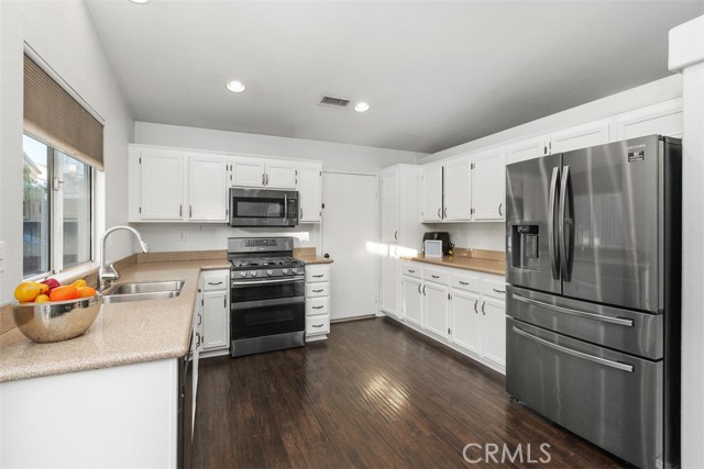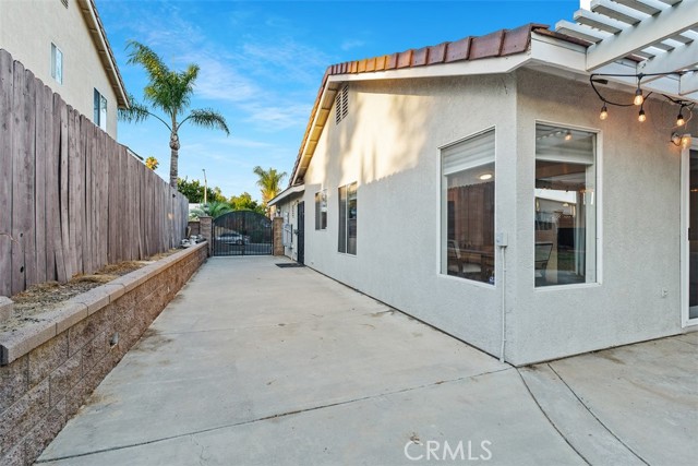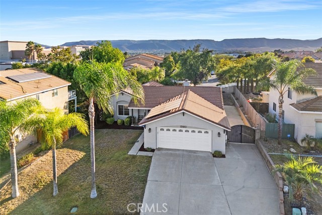 Single-Story Home with RV Parking & Energy-Saving Features This inviting single-story home sits on a generously sized lot and combines comfort, functionality, and efficiency. With 3 bedrooms and 2 bathrooms, the thoughtful floorplan provides excellent separation—placing the primary suite at the back of the home for privacy, while the two secondary bedrooms are positioned near the front. The open living and dining areas feel spacious and welcoming, enhanced by a striking double-sided fireplace set into a modern accent wall. Natural light pours in through large windows, creating a bright atmosphere and a seamless connection to the outdoors. The backyard is ideal for relaxing or entertaining, with a durable AlumaWood patio cover that offers shade and longevity. This property includes a number of valuable upgrades designed for convenience and savings: solar panels with backup battery, EV charger, a newer HVAC system with updated ductwork, and a QuietCool whole-house fan to keep energy costs low. The primary suite features dual closets and dual sinks, while the attached 2-car garage and expansive RV parking area provide plenty of storage and flexibility. Perfectly located just minutes from I-15, Murrieta Mesa High School, Shivela Middle School, and an array of shopping and dining options including Target, Albertsons, and Starbucks, this home offers the best of both comfort and convenience. Whether you’re hosting friends, enjoying quiet evenings by the fire, or taking advantage of the energy-efficient features, this home is ready to fit your lifestyle