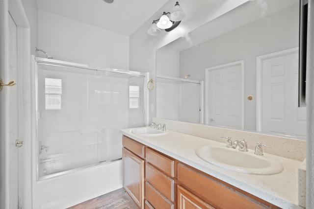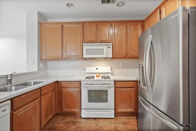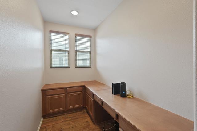 This charming two-bedroom, two-bathroom condo features an additional office area with a built-in desk, perfect for today’s lifestyle needs. The open-concept kitchen flows seamlessly into the dining & living area, complete with a cozy fireplace. The kitchen and bathrooms feature quartz countertops, while laminate wood flooring adds warmth and style. Enjoy the convenience of an in-unit laundry closet and a two-car garage with direct entry. This home combines comfort, convenience, and community.