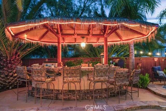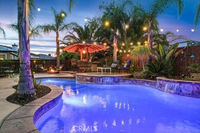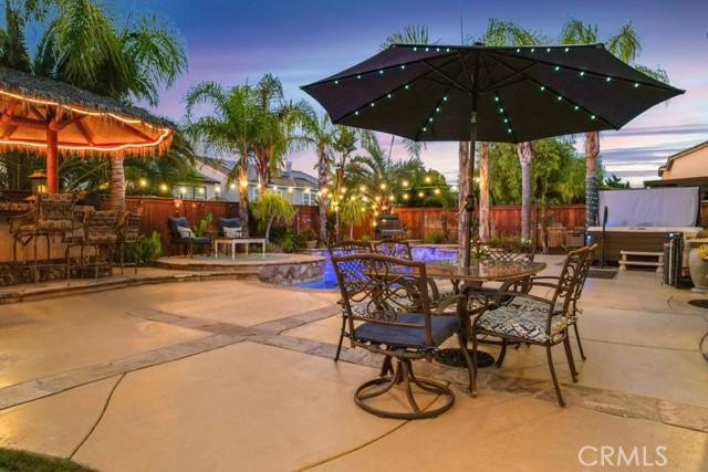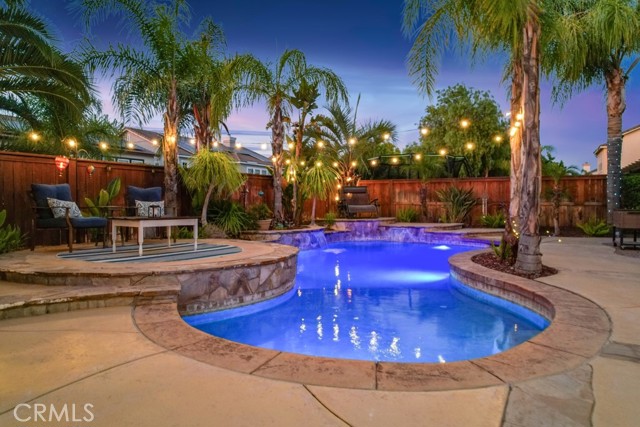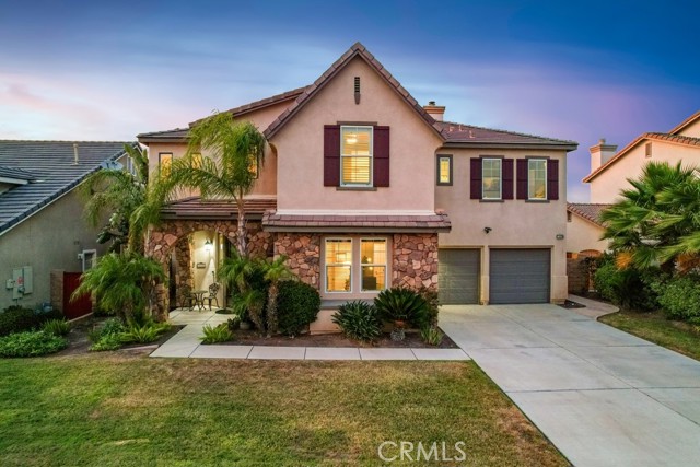 ** ATTENTION VA BUYERS, 2% ASSUMABLE VA LOAN!! Luxurious 5-Bedroom Entertainer's Paradise with Pool and Spa. Welcome to your dream home! This stunning 5-bedroom, 3,752 sq ft residence is the ultimate entertainer’s retreat, featuring a solar-heated saltwater pool, above-ground spa, Palapa bar and BBQ. Enjoy the California lifestyle in your backyard oasis, complete with a gas fire pit and putting green. Inside, you’ll find high ceilings, elegant crown molding, hardwood floors, and plantation shutters throughout. The spacious great room boasts a cozy fireplace and a built-in entertainment center, creating a warm and inviting space for relaxing or hosting guests. The chef’s kitchen is equipped with granite countertops, a custom tile backsplash, double ovens, stainless steel appliances, and tile flooring. A downstairs bedroom with a closet and dedicated exercise area offers flexibility for a home office, gym, or guest retreat, perfect for today’s versatile lifestyle. Upstairs, the double-door entry leads into a luxurious primary suite featuring dual walk-in closets, dual vanities, a relaxing soaker tub, and a spacious layout perfect for unwinding. The open loft serves as a library and sitting area, overlooking the living space below, while a spacious guest suite offers privacy with its own full bath. Ceiling fans throughout the home ensure comfort in every room. This home is truly a one-of-a-kind opportunity—luxury, comfort, and entertaining all in one perfect package. **Bundled service pricing available for buyers**
