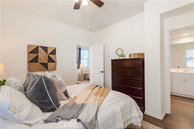 This stunning multigenerational home offers 5 bedrooms, 3.5 bathrooms, and a spacious bonus room, including an attached Multi-Gen suite with its own private entrance. The Multi-Gen suite is thoughtfully designed with a living room, spacious bedroom, kitchenette, large walk-in closet, and stackable washer and dryer—ideal for extended family, guests, or rental potential. The heart of the main home is an upgraded kitchen featuring stainless steel appliances, double ovens, a large granite island, walk-in pantry, and multiple built-ins, all seamlessly connected to the open floorplan and spacious family room. Expansive patio doors lead to a California room overlooking the large backyard, complete with a kids’ play structure and plenty of room to entertain. Energy efficiency is built in with paid solar, while a tandem 3-car garage provides ample parking and storage. Residents also enjoy access to outstanding community amenities including multiple pools, spas, picnic areas, and sports parks. Conveniently located near shopping, freeways, and top-rated schools, this home blends comfort, functionality, and resort-style living.