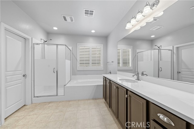 Tucked into a peaceful cul-de-sac in Spencer’s Crossing, this Single Story home features 4-bedrooms, 2.5-bathrooms and offers 2,410 sq ft of thoughtfully designed space. From the moment you enter, you’ll be greeted by high ceilings, oversized windows, and a seamless open floorplan. The stunning kitchen features a granite island, walk-in pantry, and ample cabinetry, flowing effortlessly into the spacious great room with fireplace. The flexible layout includes a double-door bonus room, perfect for a home office, media room, or creative studio. The primary suite is a private retreat with dual sinks, soaking tub, and walk-in closet. Spencer’s Crossing offers unmatched amenities: clubhouse, pools, spa, sports park, and more! All just minutes from top-rated Murrieta schools.