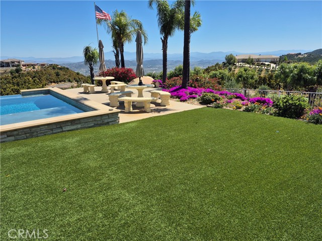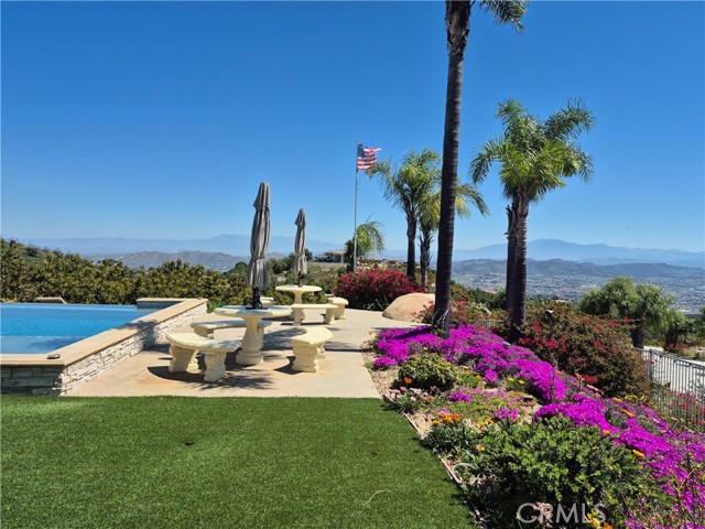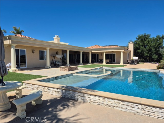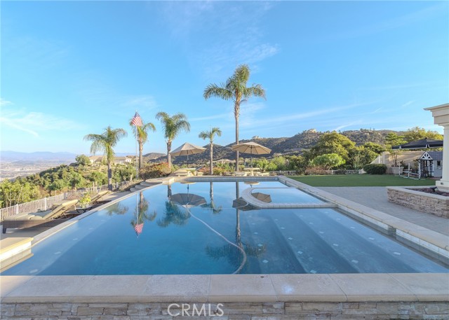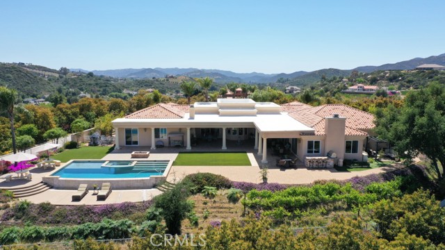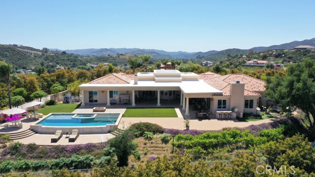 EXCEPTIONAL VALUE!!! Welcome to your gorgeous and stunning views estate; Nestled behind the private, secured iron gates; Grand entrance to the beautiful tree-lined drive way to the circular motor court greeted with fountain and front entrance of this spectacular home. This expansive single-story located in the prestigious sought after community of La Cresta in the City of Murrieta. Over 5 acres fully fenced of all useable land; Surround with a producing Avocado Grove, beautiful lush gardens, roses, orchards, play grounds; Horse Corral for Equestrian Potential; Extra pads ideal for add a guest home or more future improvement, endless possibilities. This home has it all ...Stylish, Elegance and Architecturally beautiful. Well Maintained with Endless Luxurious Amenities; Impeccable details craftmanship. Gracefully, custom style of more than 5000 square feet of thoughtfully designed of living space; Stunning Grand Entrance with Double Door open and inviting to Beautiful and Functional Floor Plan; High high Ceilings; Formal Living room; Huge and separate Formal Dining room; Chef's Kitchen, Two Dishwashers, Butler Pantry; Breakfast Family Dining Room Open to the Massive Family Room with Fireplace; Gorgeous crystal chandeliers in living and dining rooms; All bedrooms are huge with en-suite bedroom style convenience for residents and guests; A Library/computer room; a Game Room. Wonderful luxurious Master suite includes a Fireplace, his and her separated vanity, Jacuzzi Tub, Massive Walk-in Closet and a large size office/exercises room. Spacious laundry room with a sink and amber of storage cabinets. The wonderful infinity edge pool and spa are amazing with awesome views of the cities and beyond. An Expansive Coverage Patio Space Outdoor with Stone Fireplace, a Built-in BBQ , Firepit with Large Backyard creating the perfect home to Entertain All Your Guests. Enjoy the gorgeous and perfect place for seeking seclusion, sophistication and convenience, experience the finest of luxury living in this remarkable home.