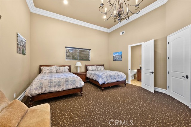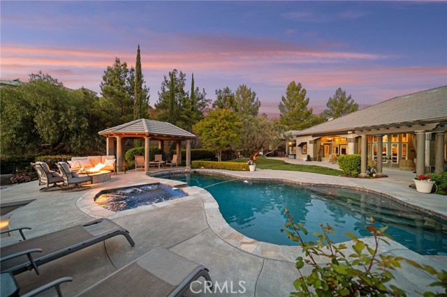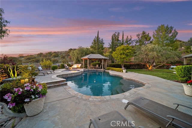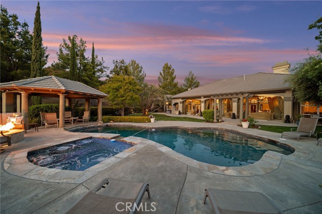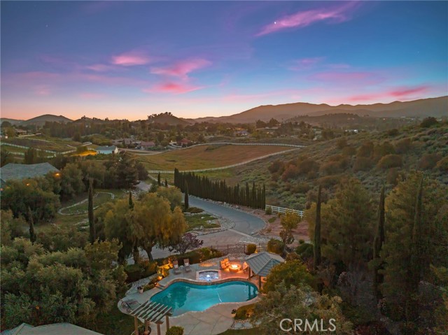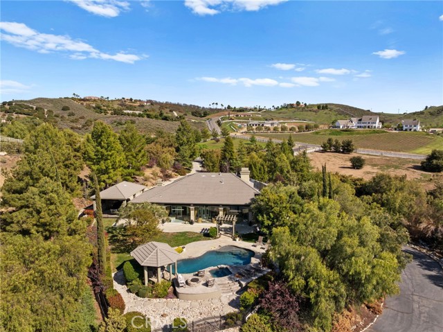 Welcome to 38565 Celine Cove where you get TWO homes on a 5 acre lot – A Private La Cresta Estate with Exceptional Craftsmanship! Situated just minutes from the front gate of La Cresta. This exquisite 5-acre estate offers the perfect blend of luxury, functionality, and privacy. Spanning approximately 6,800 square feet, the main residence is a testament to quality construction and thoughtful design. Soaring 12-foot ceilings, crown molding, and commercial-grade glass doors define the expansive interiors, which include 4 spacious bedrooms, 2 fireplaces, and an executive office ideal for working from home. The chef’s kitchen is equipped with a Bosch induction cooktop, KitchenAid refrigerator, and reverse osmosis system, making it as functional as it is elegant. The home also boasts 4 air conditioning units, an enclosed sunroom with A/C, and a paid solar system with battery backup for energy efficiency. Step outside into a backyard oasis featuring a pebble tech saltwater pool, outdoor fire pit, and lush landscaping framed by mature trees—including lemon, orange, pomegranate, pear, and apple. You get TWO 3-car garages, AS WELL AS one enclosed RV parking with generous storage for your oversized collectibles. Let's not forget about the 2,400 square foot guest house, complete with soaring vaulted ceilings, an enclosed sunroom, 2 large bedrooms, a full kitchen with granite counters, and an oversized garage with an enclosed RV bay—all constructed to the same exacting standards as the main home. This private estate features an electric gated entry, offering security and seclusion just 10 minutes from top-rated schools, the freeway, and shopping. 38565 Celine Cove is more than a home—it’s a sanctuary of comfort, sophistication, and California country living at its finest.