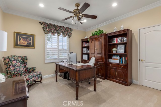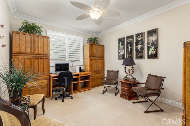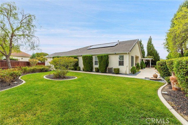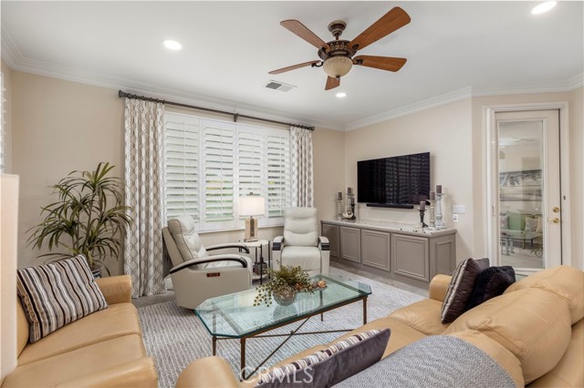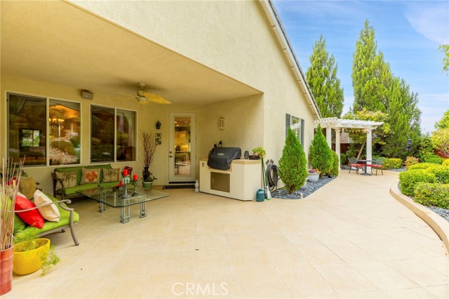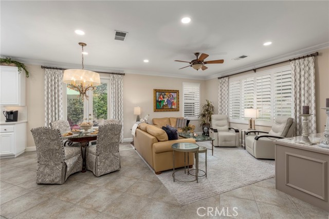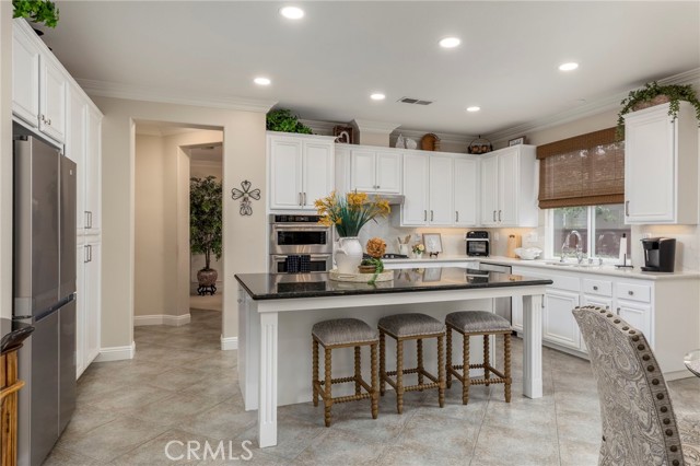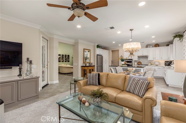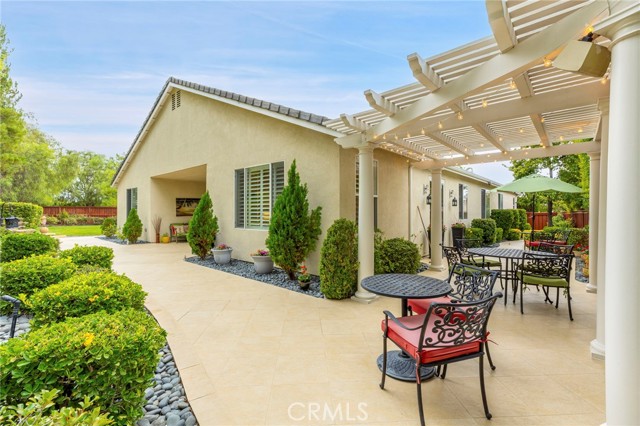 Welcome to Four Seasons by K. Hovnanian, Murrieta’s premier 55+ active adult community, where elegance meets ease and every day feels like a getaway. Nestled just minutes from Temecula Wine Country, this single-story masterpiece spans approximately 2,773 sq. ft. on an expansive .34-acre lot (approx. 14,810 sq. ft.) a rare combination of sophistication, comfort, and resort-style living. Step inside to soaring ceilings, graceful chandeliers, and rich architectural details including crown molding, large baseboards, and plantation shutters throughout. The chef’s kitchen impresses with quartz countertops and full backsplash, custom cabinetry, butler’s pantry with dry bar and beverage refrigerator, and high-end Bosch and KitchenAid appliances. Enjoy the benefits of a reverse osmosis system, soft water filtration, and 12 fully paid solar panels for sustainable luxury. The Primary Suite is a true sanctuary featuring a fireplace, dual walk-in closets, and a spa-worthy bath with soaking tub, upgraded fixtures, and separate his-and-hers sinks. Two spacious guest bedrooms share a Jack-and-Jill bathroom, ideal for hosting family or friends. The backyard feels like a private garden retreat-professionally landscaped, with ceramic-tiled patios, BBQ island, three tranquil fountains, custom exterior lighting, and covered entertaining areas. Surround sound inside and out, invisible screen doors, and a decorative glass entry door create an effortless indoor-outdoor flow. At The Lodge at Four Seasons, residents enjoy world-class amenities: pickleball, tennis, bocce, fitness center, resort-style pool, spa, and vibrant social events. Experience the best of Southern California living-where luxury, leisure, and lifestyle come together beautifully.