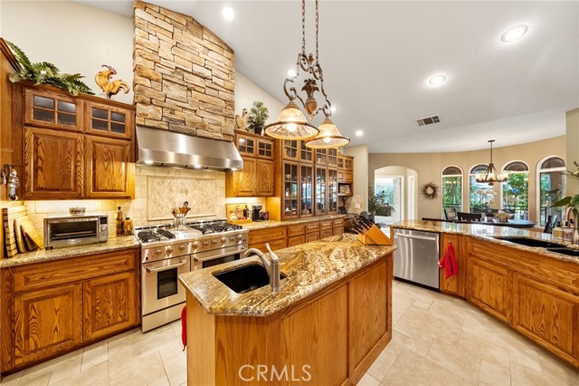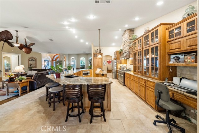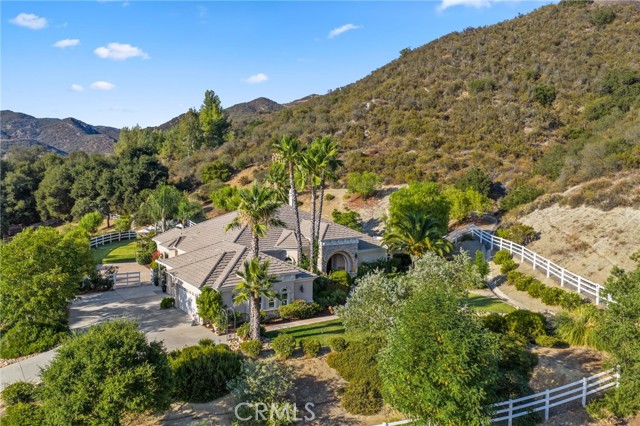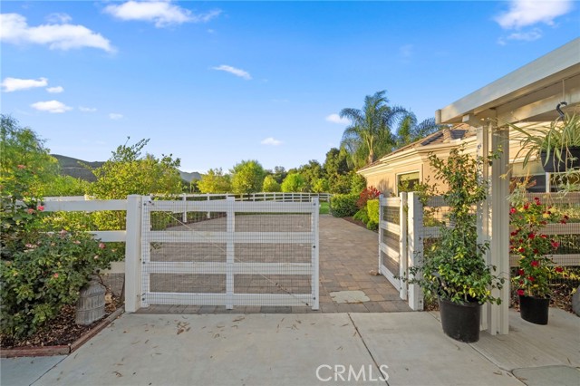 Price Correction! La Cresta, Murrieta Luxury Estate — Elegance, Acreage & Timeless Living Experience elevated living on 5.57 private acres in Murrieta’s prestigious La Cresta community. This 3,106 sq ft single-level estate offers 3 spacious bedrooms and 3 baths, masterfully designed with towering 9-foot ceilings, cathedral accents, and luminous designer windows that bathe the interiors in natural light. A chef’s kitchen steals the spotlight with granite slab countertops, custom cabinetry, an expansive dining island with sink, and open access to the entertainment-friendly living spaces. Host with style in the formal dining room, unwind in the serene breakfast nook, or relax by the grand stone fireplace. The owner’s suite is a retreat of its own — featuring dual walk-in closets, direct patio access, and a spa-inspired bath with oversized soaking tub and dual-head shower. Secondary bedrooms are bright and generously sized, sharing a luxe full bath with impressive soaking tub, tiled walk-in shower and dual craftsmanship sinks. Step outside to your manicured paradise: an 8-ft-deep pool with strung lights, covered patio and additional pergola, lush landscaping, gated entry, panoramic views, and stereo outdoor speakers that set the mood for sunset gatherings. Fruit trees and your own private raised garden beds to created those delicious dishes. Horse lovers will appreciate direct access to scenic riding trails, with gently rolling terrain, and plenty of space for barns, paddocks, or arenas, your horses will thrive in harmony with the land. The expansive acreage and fenced perimeter provide freedom and safety, while panoramic views make every ride unforgettable. Estate includes a paid solar system, 1,000+ sq ft. 3-car garage with storage room, newer generator, reverse osmosis, and onsite well. RV Parking. This is more than a home — it’s a lifestyle. Welcome to La Cresta.