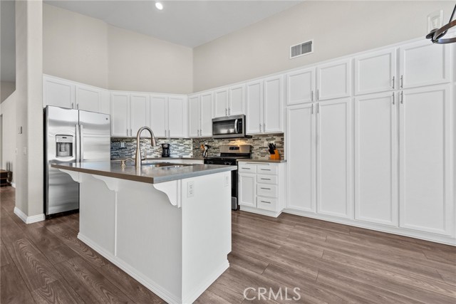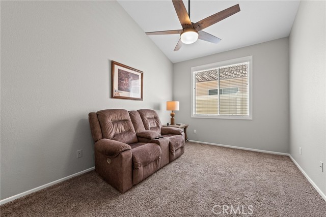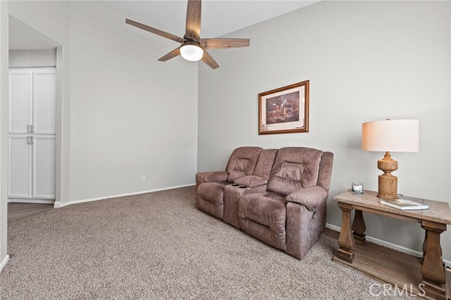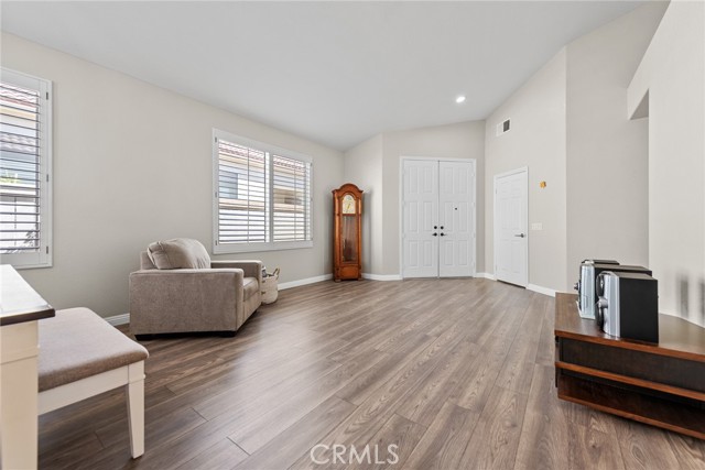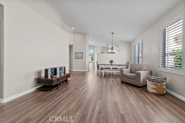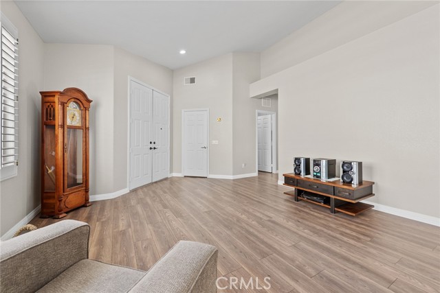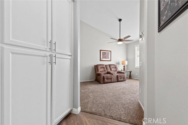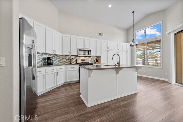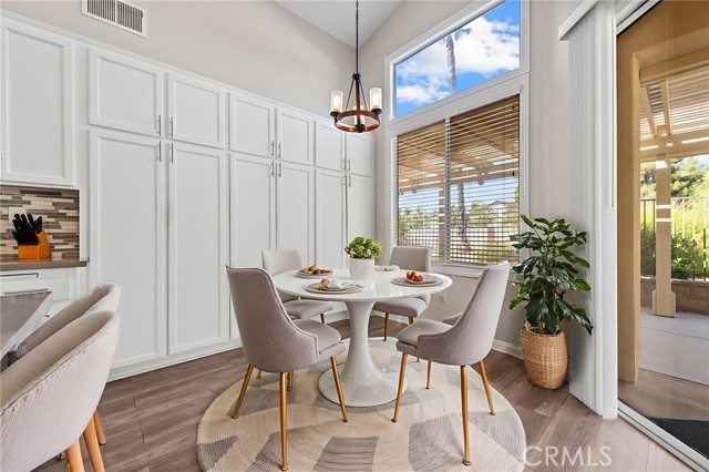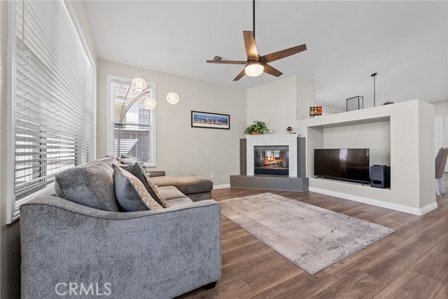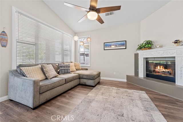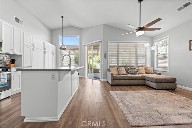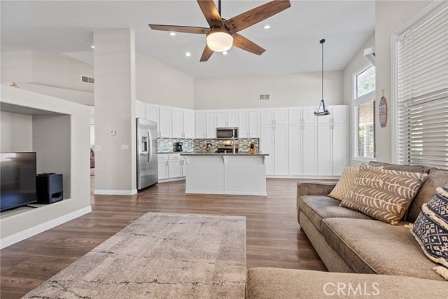 Welcome to this stunning single-story home, perfectly nestled in a beautiful, established neighborhood "The Colony" Boasting a fantastic blend of comfortable indoor living and sun-drenched outdoor enjoyment, this property is ideal for those seeking modern convenience in a serene setting. Step inside to an open floor plan where the main living areas flow seamlessly. The heart of the home is the updated kitchen, featuring, extensive white cabinetry for incredible storage, sleek stainless-steel appliances, quartz countertops, a modern backsplash, and a large center island with seating. Relax in the main living room beside a cozy fireplace, or unwind in the adjacent carpeted den, perfect for movie nights. High ceilings and ceiling fans enhance the bright, airy atmosphere throughout. The spacious Primary Suite is a true retreat, offering plush carpeting, an en-suite bath, and direct sliding door access to the private outdoor space. Outside, you'll find a large, shaded pergola-covered patio an ideal setting for al fresco dining, entertaining guests, or simply enjoying the California sunshine. Other features include new blinds in the bedrooms, updated bathrooms with new sinks, counter tops, and modern light fixtures shutters in living and family room, low maintenance landscape with newer sprinklers.