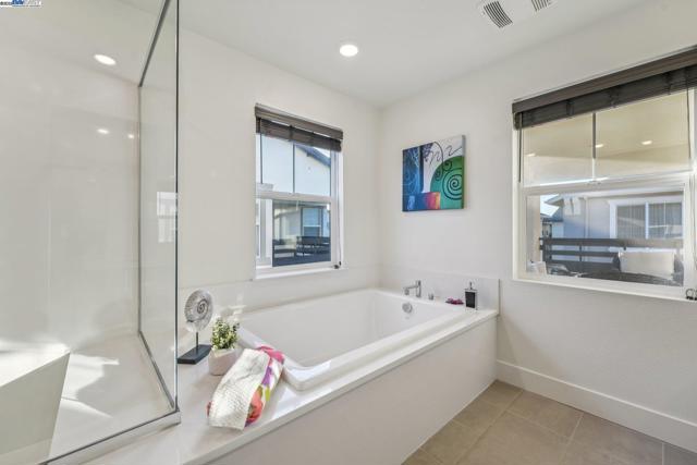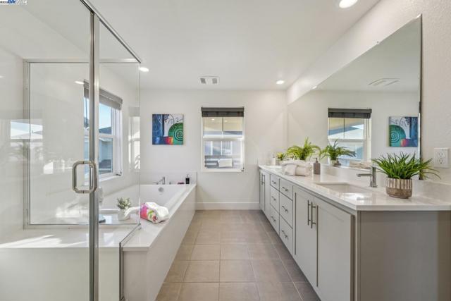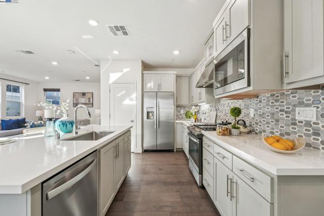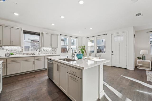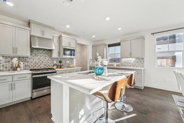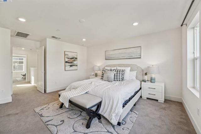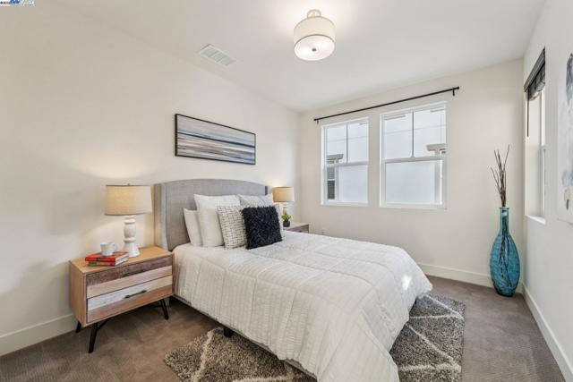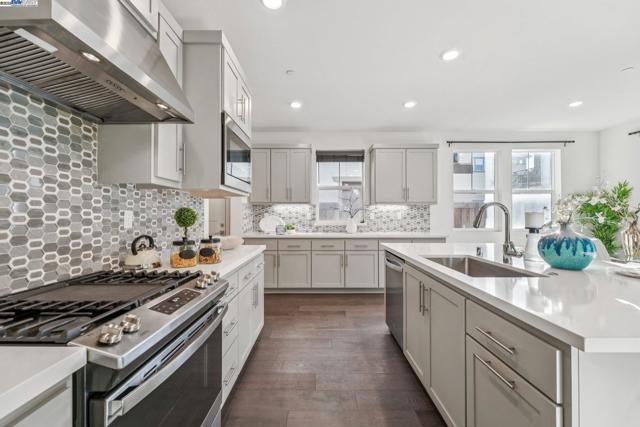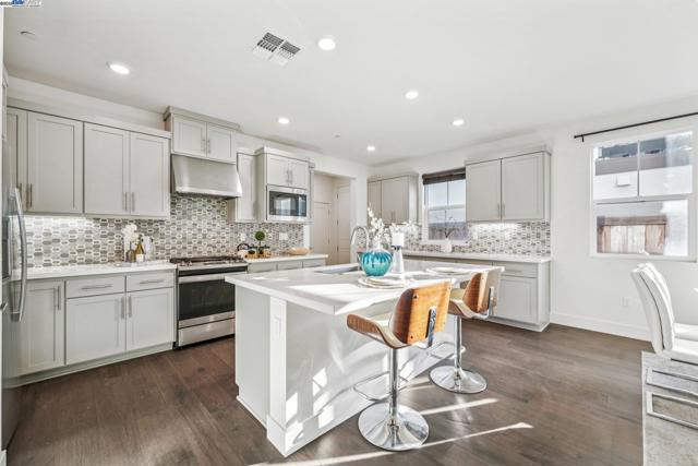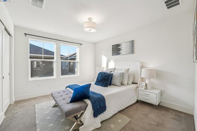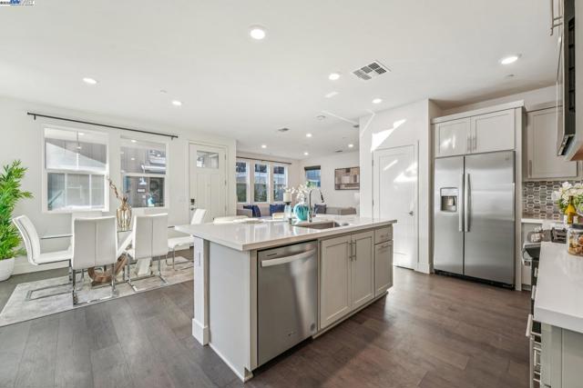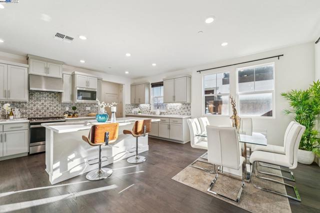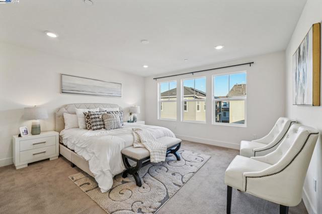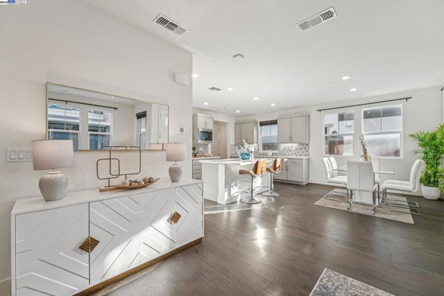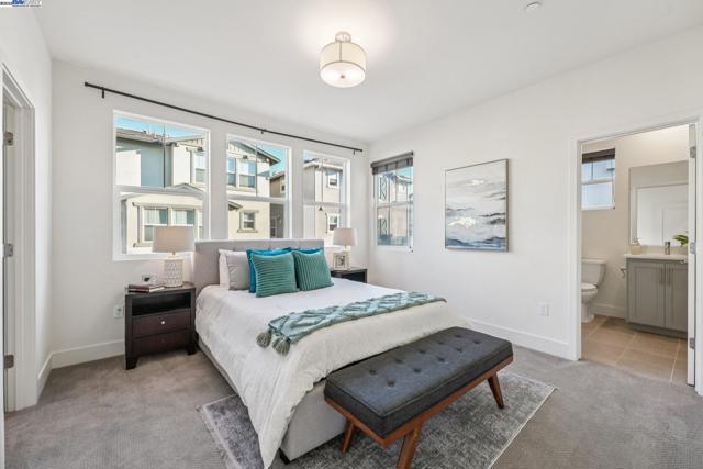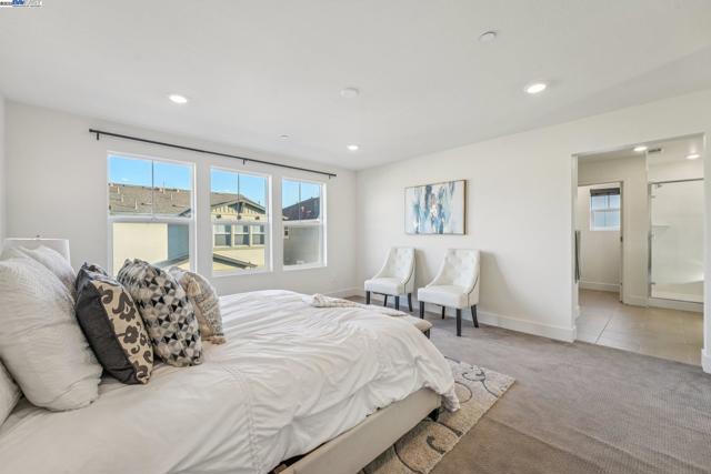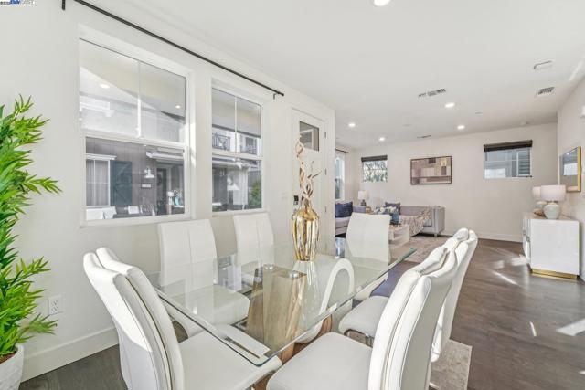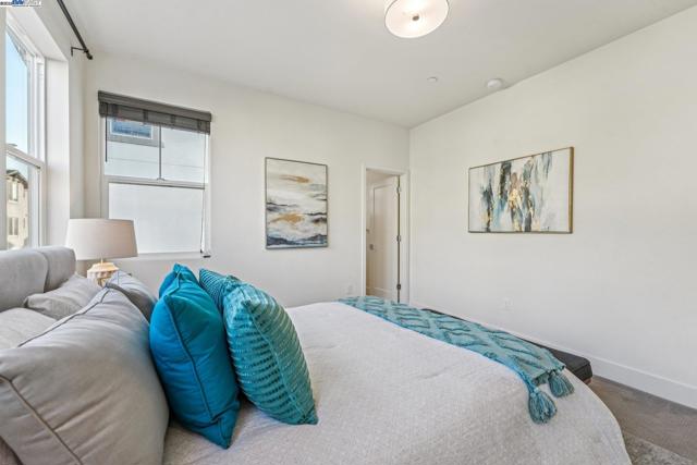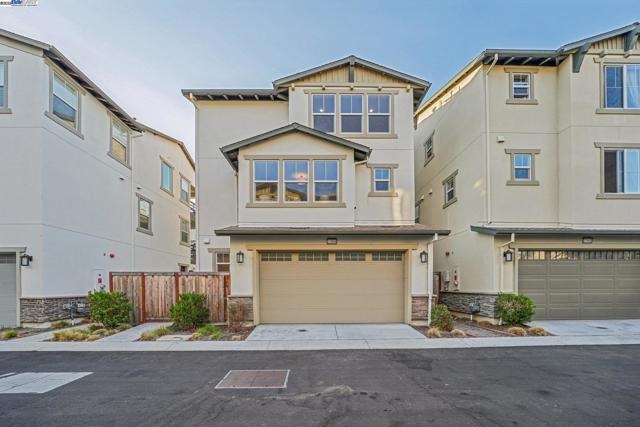 Welcome home to this luxurious, fully upgraded north-facing 5BR/4.5BA in the sought-after Bridgeway Community. This modern, energy-efficient smart home features fully owned solar panels, EV charging, tankless water heater, and high-end finishes throughout. The open-concept kitchen, dining, and living area is ideal for entertaining, with quartz countertops, stainless steel appliances, shaker cabinets, and tile backsplash. Enjoy outdoor living with a paved patio and spacious California Rooms on the 2nd and 3rd floors offering fresh breezes and scenic views. The elegant owner’s suite includes a large soaking tub and generous closet space. A 2-car garage adds convenience. Resort-style amenities include a clubhouse, sparkling pool, jacuzzi, full kitchen, lounge, walking trails, and sunset views. Ideally located near HWY 880/84, Tesla, Meta, Dumbarton Bridge, Ranch 99, Sprouts, and more. Walking distance to Meta shuttle. A rare blend of luxury, comfort, and prime location—this turnkey gem has it all!