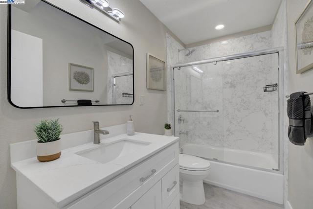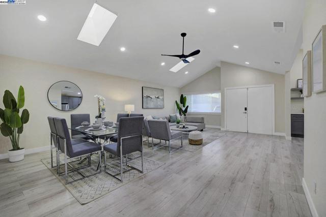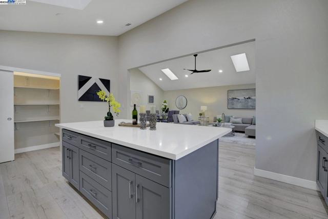 This meticulously remodeled 4-bed, 3-bath single-level home blends modern style with effortless comfort. Step inside to soaring ceilings and multiple skylights that fill the exceptional open floor plan with natural light. The living, dining, and kitchen spaces flow together seamlessly, creating a bright, expansive heart of the home. The stunning contemporary kitchen features sleek finishes and a massive, storage-rich island—perfect for everyday living or weekend entertaining. Designed with flexibility in mind, the home offers two private primary suites, ideal for guests or multi-generational living. The additional bedrooms are generously sized with no small rooms, ensuring comfort for everyone. All bathrooms have been luxuriously updated with floor-to-ceiling stone slabs or full-room tile, enhanced by bright skylights and premium Hansgrohe fixtures. The home is as smart as it is beautiful, featuring a new electrical panel, whole-home rewiring, recessed LEDs, smart switches, motorized blinds, and a complete smart camera system. Durable laminate flooring flows throughout. Sliding doors open to a tranquil backyard with a large fruiting Avocado tree—your own private sanctuary. A truly exceptional property not to be missed!