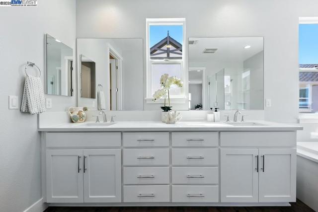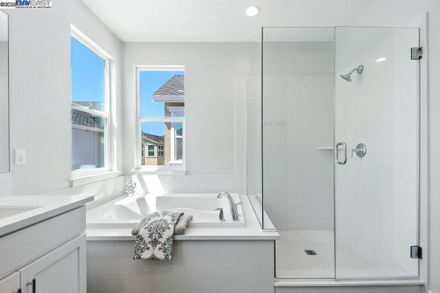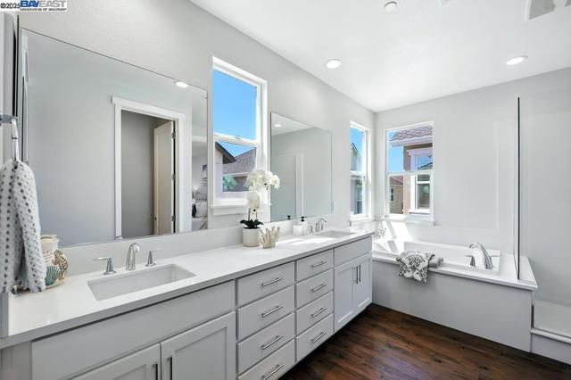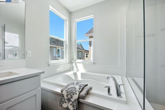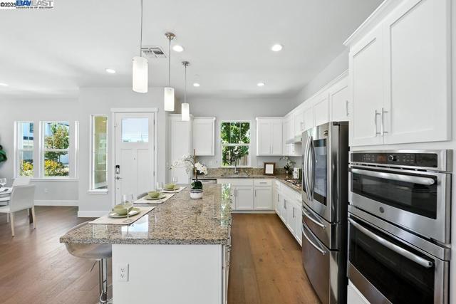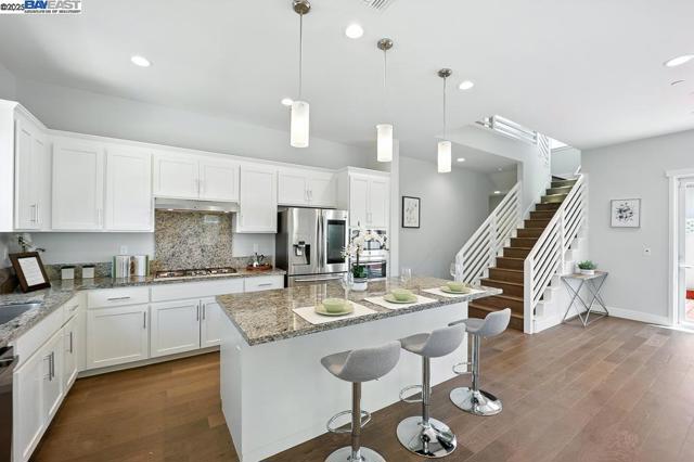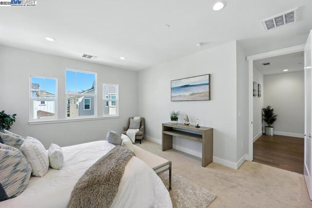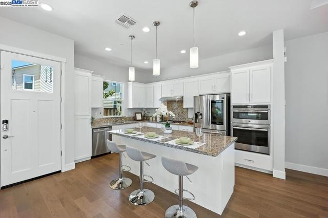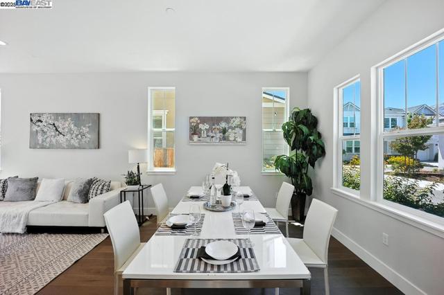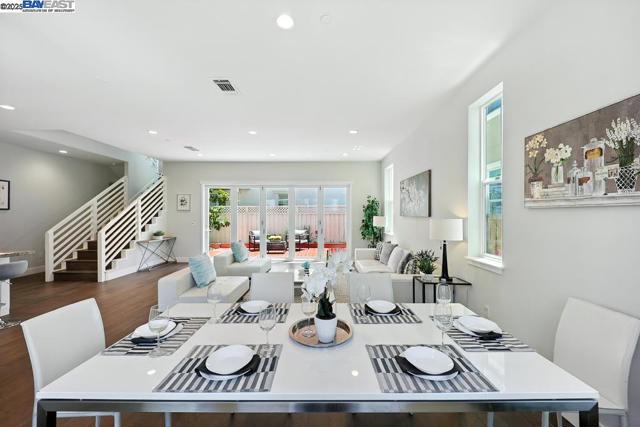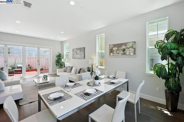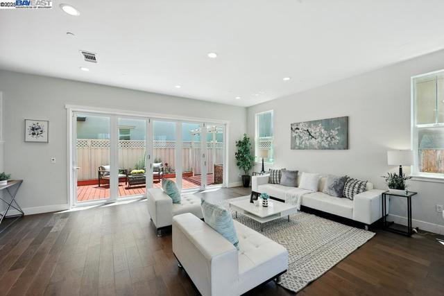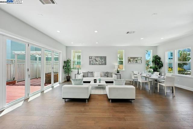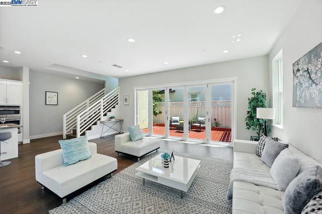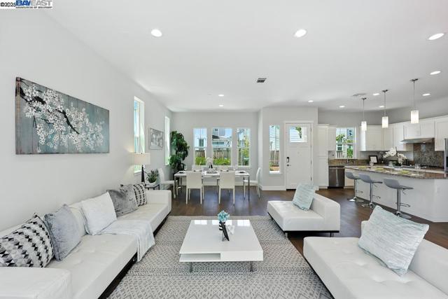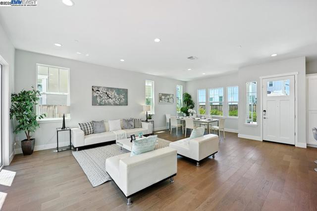 Welcome to this beautiful, modern two-story single-family home in the desirable Glass Bay community—offering the perfect blend of comfort, style, and energy efficiency. With soaring ceilings and 2,293 sq ft of thoughtfully designed living space, this 4-bedroom, 2.5-bathroom home is ideal for both everyday living and entertaining. Enjoy premium engineered hardwood flooring throughout the first floor, staircase, and one of the bedrooms. The gourmet kitchen showcases marble countertops, soft-close drawers, and elegant cabinetry. Recessed LED lighting brightens the living, dining, and bedrooms. Additional features include a prewiring for EV charger, water softener, and a beautifully upgraded backyard with a stylish deck and pergola—perfect for relaxing or hosting. Glass Bay offers parks, a kids' playground, BBQ/picnic areas, and access to scenic trails at Don Edwards Wildlife Refuge and Coyote Hills Regional Park. Commuters will love the proximity to the Dumbarton Bridge, I-880, and top employers like Meta and Tesla—with diverse dining options nearby for food lovers.