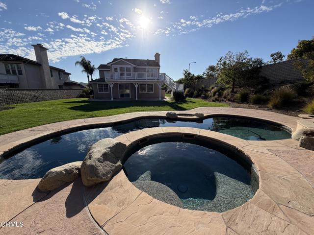 Looking for a property with land? Welcome to 116 Via Escondido, a unique home tucked away at the end of a cul-de-sac on an expansive 17,859 sq. ft. lot with a three car garage. Enjoy breathtaking mountain views, no rear neighbors, and the added privacy of block walls while relaxing in your custom PebbleTec pool and spa. A cozy outdoor fireplace creates the perfect ambiance for evening gatherings, and the spacious backyard is ideal for hosting family and friends. Off the primary bedroom, a custom covered deck provides a private retreat with direct access to the backyard. Inside, high ceilings and an open floor plan create a bright, airy feel. The kitchen flows seamlessly to the back patio, making entertaining effortless. One bedroom is conveniently located downstairs next to a full bath and laundry room, while upstairs you'll find three more bedrooms, two full bathrooms, and a versatile loft--perfect for a home office or second living area. One of the bedrooms even features an oversized closet that can double as extra storage or a fun playroom.This inviting home is within walking distance to Dos Vientos Community Park, Sycamore Canyon K-8 School, and nearby shopping, with scenic hiking trails just minutes away.