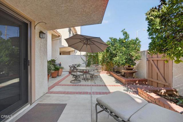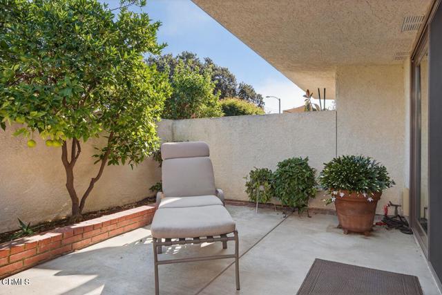 Beautifully Upgraded and Immaculate 3-Bedroom, 2-bath Town home in the desirable Shadow Mountain Tennis Club neighborhood! Nestled on a cul-de-sac in the scenic rolling hills of Newbury Park, this very special 2-story home features a spacious primary bedroom suite conveniently located on the first floor and abundant closet space throughout. The lovely remodeled kitchen boasts premium finishes, including a Viking stainless steel stove & refrigerator, granite counter tops, built in dishwasher, custom cabinets with pull out drawers and a sunny breakfast nook to enjoy your morning coffee or tea! Step into the inviting living room with a cozy fireplace and enjoy seamless indoor-outdoor living with direct access to a private patio - perfect for entertaining, relaxing on your chase lounge chair, or enjoying fruit from your own Pomegranate or Cara Cara orange trees. There are two bedrooms and one full bath upstairs, one of the bedrooms has it's own balcony with east facing views. This home also includes a separate dining room, lots of natural light, high ceilings, dual pane windows, A/C, ceiling fans, plantation shutters, and an attached 2-car garage with attic storage space along with ample guest parking close by. Residents enjoy access to fantastic community amenities, including tennis courts, a sparkling outdoor pool, a clubhouse and peaceful walking paths. Ideally located near hiking trails, shopping, restaurants, Ragamuffin Coffee Roasters, Trader Joe's, Newbury Park High School, and more. This is California living at its best! These homes rarely come on the market, schedule your private showing today.