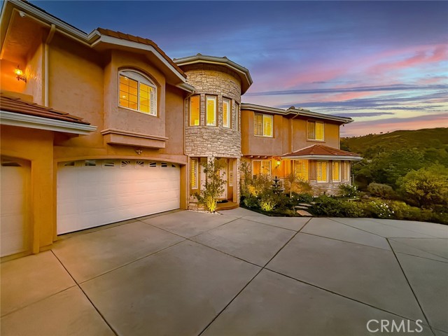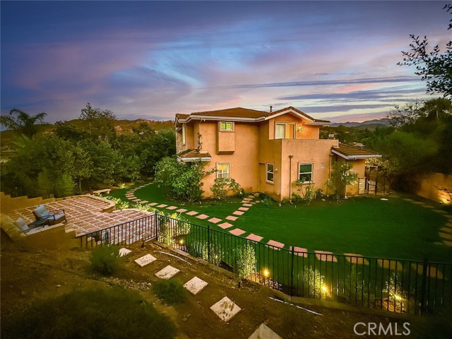 Welcome to the exclusive gated enclave of Lynn Oaks Estates. This stunning residence is perched atop a long private driveway and offers breathtaking surroundings on approximately 1.5 acres. This one-of-a-kind property includes a working beehive for fresh honey, a charming chicken coop, and potential building opportunity, with the possibility of a separate access driveway via a neighboring easement with breathtaking 360-degree view—enjoy sunrise to sunset views of the surrounding mountains, rolling hills, and city lights. Behind elegant double entry doors adorned with leaded glass insets, you're greeted by a showstopping circular wrought-iron staircase, setting the tone for the sophistication throughout. The formal living room boasts dramatic cathedral ceilings, a custom fireplace, and ornate iron-accented windows that flood the space with natural light. An arched passageway leads to the formal dining room, perfect for hosting elegant dinners. Adjacent, the butler’s pantry flows seamlessly into the heart of the home—an expansive gourmet kitchen equipped with stainless steel appliances, a large walk-in pantry, and a generous center island, all open to a spacious dining area and inviting family room complete with fireplace, wet bar, and plantation shutters. Downstairs also includes a versatile office/gym, a guest bedroom, and two baths, offering comfort and functionality for family and guests. Upstairs, the massive primary suite serves as a private sanctuary featuring a balcony with a view of the backyard, an ensuite bath with dual vanities, a soaking tub overlooking the backyard, a separate shower, and a private water closet. Additional bedrooms include one with a private ensuite and two sharing a Jack-and-Jill bath, all designed with comfort and style in mind. Step outside to a newly sodded backyard, perfect for entertaining with an elevated platform ideal for al fresco dining. Venture up the tiered slope via a scenic staircase that leads to a breathtaking 360-degree vista—enjoy sunrise to sunset views of the surrounding mountains, rolling hills, and sparkling city lights. Don’t miss your chance to own a truly unique property offering land, and limitless lifestyle potential in one of the area’s most desirable gated communities.