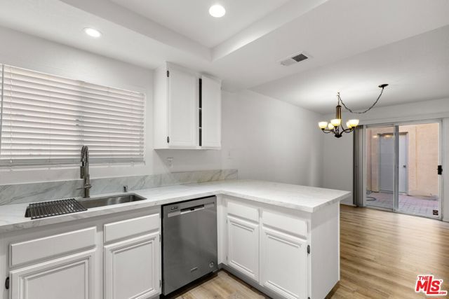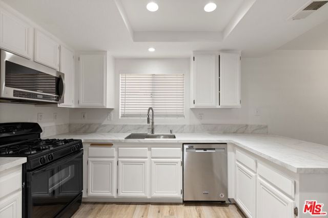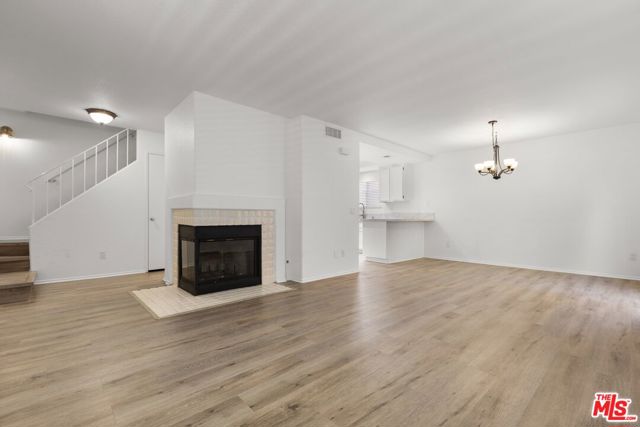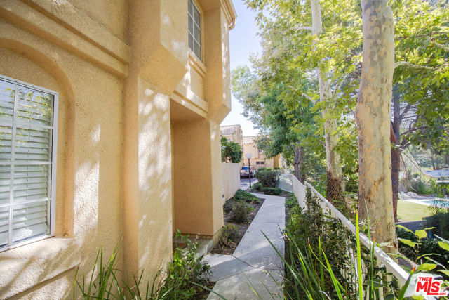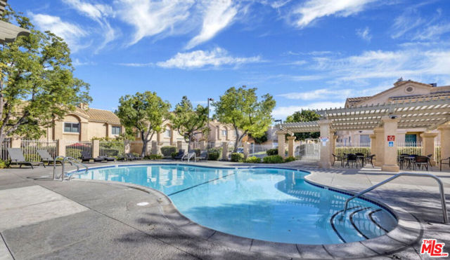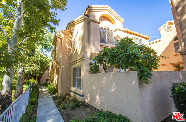 Welcome to Vista Del Canon, a gated community known for its convenience, amenities, and great Santa Clarita location. This particular unit sits on the western end of the complex with peaceful views of surrounding greenery and only one shared wall, making it one of the more desirable layouts in the community. This 3-bedroom, 2.5-bath townhome has been thoughtfully updated and well cared for. The remodeled kitchen features new countertops, white cabinetry and upgraded appliances. The open-concept living and dining areas include wood-like flooring, a cozy fireplace, and easy access to your private patio. A half bath and direct garage entry complete the main level. Upstairs are all three bedrooms, a separate laundry room, and two full bathrooms with shower/tub combos. The primary suite offers vaulted ceilings, mirrored closet doors, and a private ensuite bathroom. Includes central AC/Heat, water heater, and other well-maintained systems, making this home move-in ready. Parking is easy with your own 2-car side-by-side garage. The community includes a swimming pool, spa, kids playground, 24/7 security, and the HOA dues pay for your water and trash! Conveniently located near award-winning schools, Costco, Stater Bros, CVS, Starbucks, and the Metrolink station, with quick access to the 14 freeway. No Mello-Roos and an excellent location make this a great find in Santa Clarita.