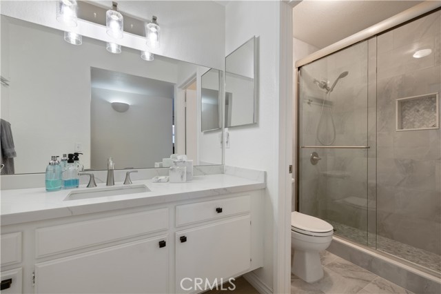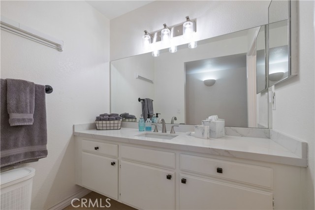 Top of the Mountain Enclave in SCV. Upper 3-bedroom/2 bath - Upgraded and Remodeled Private Corner unit. No one below so upgraded commercial grade woodgrain Vinyl and tile flooring throughout! Walk into This light and bright unit with Vaulted ceilings. The kitchen has been updated with Stainless steel appliances and Quartz counters and sink. The kitchen has a great window overlooking the entry stairs and opens into the living area with entertainer’s patio right though the sliding glass doors. Off the dining area and across from the pantry is the laundry room with storage cabinets and folding area. The home features a premium suite with its own private patio and Full bath all remodeled with contemporary stone and tile finishes. 2 more generously sized bedrooms and a full mid-bath complete the interior. The 2-car garage is right below the unit and there is even an additional storage area off the garage. AS an added bonus the Heating /AC system and Water Heater were both recently replaced!! The Vista’s community has a ton of amenities with pools/spas, tennis and sports courts, parks, playground and BBQ facilities – room to play, relax or take a view inspired walk. Even Earthquake insurance is included with the dues. This top of the hill community is walking distance to the highly ranked (8/10 on Great Schools) Dr. J. Michael McGrath Elementary School – and has the easiest commuting access into the Greater LA area in all of Santa Clarita Valley! The best news - All loans are options here FHA/VA welcome and the seller is offering to help the buyer buy their rate down with a $5000 credit. See this one soon!