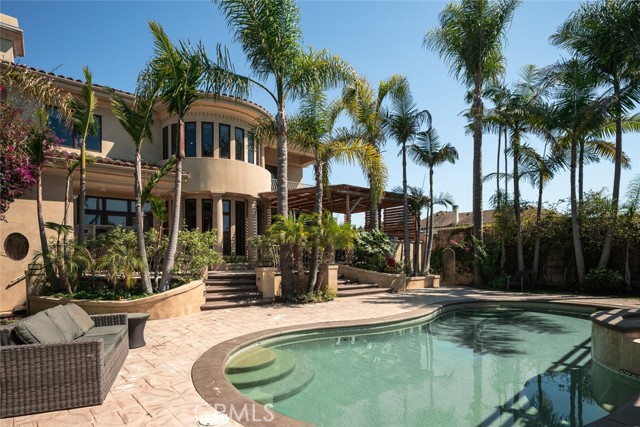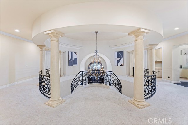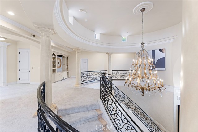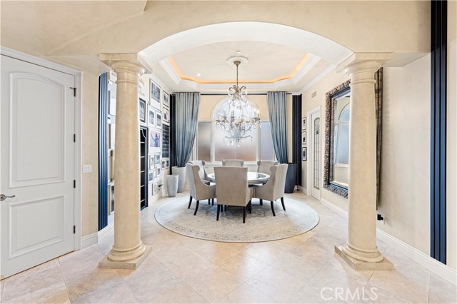 Set on nearly half an acre in Newport Beach’s coveted equestrian-zoned enclave, this 7,000+ sq. ft. custom Mediterranean estate masterfully blends timeless elegance with modern luxury. A grand entry with handcrafted double doors opens to a soaring foyer crowned by dual spiral staircases, an architectural centerpiece of the home. Formal living and dining rooms exude sophistication, while the expansive family room offers a wet bar, rear-projection cinema screen, and Crestron home automation. The chef’s kitchen features granite countertops, custom cabinetry, a butler’s pantry, and professional-grade appliances, all flowing seamlessly into the home’s gathering spaces. The primary suite is a private retreat with a fireplace, spa-like bath, steam shower, dry sauna, and custom walk-in wardrobe room. Two upstairs en-suites and two main-level guest suites provide luxurious accommodations. A private elevator serves all levels, including the rare subterranean seven-car garage with its own workshop. Outdoors, a resort-style pool and spa, full-size illuminated tennis court, and lush grounds create the ultimate entertainer’s paradise, all just minutes from Back Bay trails, renowned beaches, fine dining and shoping, offering an unmatched locale.