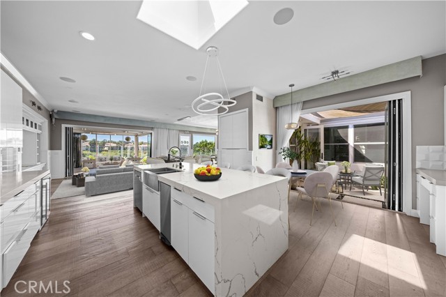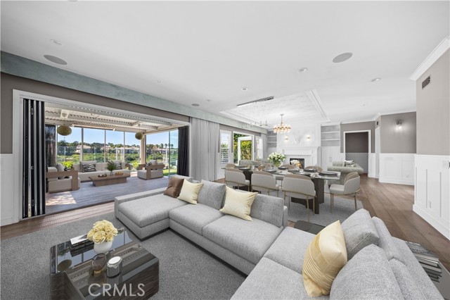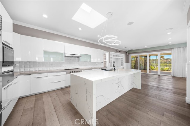 Welcome to this fully renovated, single-level luxury residence in the prestigious, guard-gated Bonita Canyon community of Newport Beach. This exceptional home has been structurally transformed, with seven interior walls removed to create an expansive, open-concept layout that blends modern elegance with functionality. To support this architectural reimagining, new steel beams were expertly installed, ensuring both durability and design integrity. Completely updated plumbing, piping, and electrical throughout. The home is bathed in natural light, thanks to the addition of five skylights—bringing the total to Six—strategically placed to enhance the home's bright, airy atmosphere. All plumbing and piping throughout the home have been completely replaced, offering peace of mind and long-term reliability. Designed for effortless indoor-outdoor living, the home features three oversized folding glass doors—in the breakfast nook, family room, and primary suite—each opening to tranquil canyon and city light views. The chef’s kitchen is equipped with a premium Sub-Zero double French door refrigerator, and each bedroom and the garage feature custom California Closets built-ins for optimal storage. The garage includes extra built-in cabinetry and ceiling-mounted racks, and the entire home is powered by a full Savant smart system—giving you control of lights, TVs, audio, and security from your phone. Additional smart features include automatic curtain controls, smart toilets, e-locks with remote and fingerprint access at both front and side gates, solar panels, and a dedicated Tesla car charger. The primary living room, bedroom, and bathroom lighting fixtures have been updated with contemporary designs. Two new glass-enclosed patios with integrated heaters and curtains extend the living space outdoors, offering elegant, year-round entertaining options. Home office can be converted to #4 bedroom if needed. 2 newly built-out patios adding extra 550 SF living space. Located minutes from world-renowned Fashion Island and major freeways including the 405, 73, 55, and 22, this home offers both unmatched convenience and privacy. With the cool ocean breeze flowing through Bonita Canyon, air conditioning is rarely needed—but always available for your comfort. Don't msis your opporunity to this rare single level home offering combines extensive structural upgrades, luxury finishes, and smart innovation in one of Newport Beach’s most desirable communities.