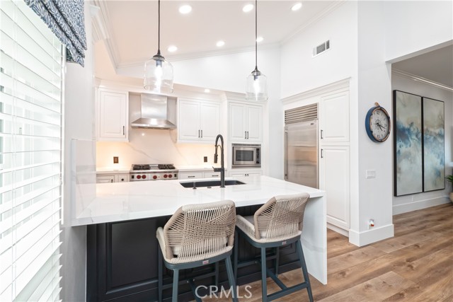 Experience Bayside Cove Luxury Living Settled within the private gates of Bayside Cove, this newly renovated 2,180 square foot, three-bedroom, two-and-a-half-bathroom condominium offers an unparalleled blend of sophistication and comfort. Set in one of Newport Beach’s most coveted waterfront communities, it promises an enviable lifestyle where every day feels like a getaway. step inside to discover all-new floating wood laminate flooring, elevating the space with contemporary warmth and style. The heart of the home is the gourmet kitchen, beautifully appointed with quartz countertops and an elite suite of commercial-grade appliances, including a Subzero refrigerator, Wolf range, and Bosch dishwasher. Whether you’re hosting friends or preparing a quiet meal, the kitchen’s thoughtful design inspires culinary creativity. Gather in the cozy living room, anchored by a charming fireplace that invites relaxation and conversation any time of day. Adjacent, a stylish bar area with a built-in wine fridge sets the scene for memorable evenings and effortless entertaining. Each element has been crafted for both comfort and elegance, creating a welcoming haven to call home. Step out onto the expansive viewing deck and let your gaze sweep across the sparkling waters of Beacon Bay. This west-facing vantage point offers front-row seats to breathtaking sunsets and the tranquil beauty of Balboa Island and Newport Harbor. Whether savoring a quiet morning coffee or celebrating with friends, the deck is your gateway to coastal serenity. As a resident of Bayside Cove, you’ll enjoy exclusive access to a private beach, a resort-style swimming pool, and a soothing spa—perfect for active afternoons or peaceful relaxation. The community’s lush landscaping and secure environment provide a sense of tranquility and belonging. Just moments from your door, the vibrant shops, cafés, and acclaimed restaurants of Balboa Island await, offering endless opportunities for dining, shopping, and leisure. For boating enthusiasts, Villa Cove Marina is close by, making it easy to embark on a sunset cruise or dock your vessel. Imagine ending each day with the glow of the setting sun reflected over Newport Harbor, whether from your deck or the comfort of your own boat. Luxurious, welcoming, and perfectly positioned for the best of Newport Beach, this Bayside Cove condominium is more than a home, it’s your invitation to an inspired coastal lifestyle. Most all furnishings included. Not Primary furniture