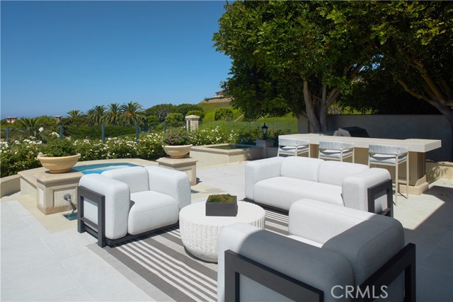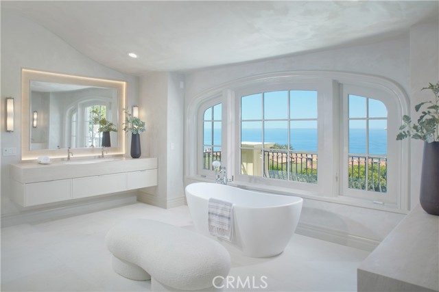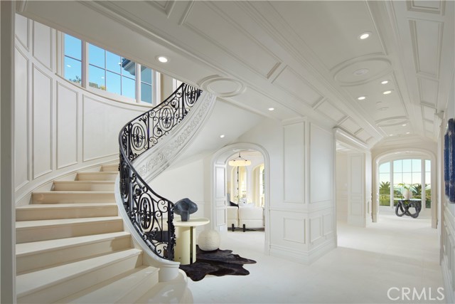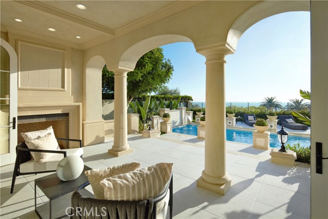 Exquisitely reimagined in 2025, this French palatial manor pairs timeless European elegance with fresh, modern sophistication. Set on a 13,155± sq. ft. parcel in the prestigious guard-gated enclave of Pelican Crest, the 8,367± sq. ft. residence commands sweeping views of the Pacific Ocean, Catalina Island, Newport Harbor, and the famed Pelican Hill Golf Course. Behind its stately façade, every detail has been elevated with the finest materials and craftsmanship: natural limestone and white oak herringbone floors, hand-brushed Venetian plaster, Moka Creme honed stone in all wet areas, and bespoke solid brass hardware in oil-rubbed bronze or polished nickel. The two-story foyer with antique chandelier leads to a grand staircase, gracious formal living and dining rooms with custom fireplaces, a richly appointed wood-paneled library, and a sun-filled family room with fireplace that adjoins the gourmet kitchen. A culinary showpiece, the kitchen featuring Calacatta Vagli marble surfaces, custom cabinetry, dual refrigerators, professional-grade appliance, and a built-in upholstered ocean-view banquette with custom breakfast table. The opulent primary suite offers a fireplace, spa-inspired bath with an ocean-view soaking tub, architectural glass-block accents for natural light, and a custom-designed closet. Additional amenities include five secondary suites, a tiered theater room, activity/fitness spaces, sauna, steam room, and a subterranean 7-car garage. Additional upgrades include a new roof, new HVAC system, all new plumbing connectors and two new water heaters. Outdoors, new stucco and roofing frame lush entertaining areas with a saltwater pool/spa and BBQ/kitchen with natural stone countertops — all set against a backdrop of endless coastal beauty. This is Newport Coast living at its most refined — where architectural artistry meets modern luxury in a rare, view-rich estate.