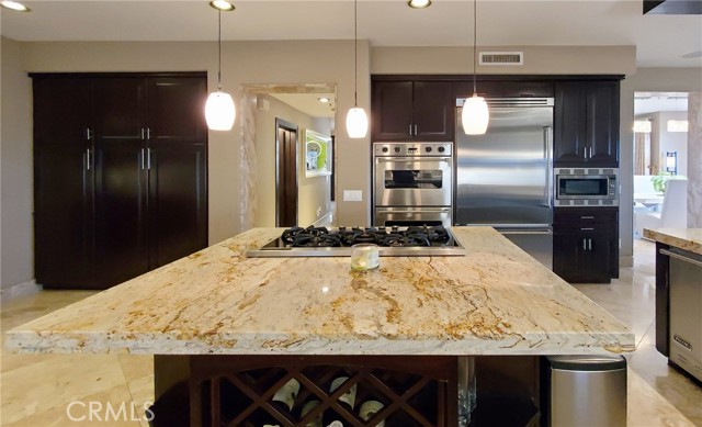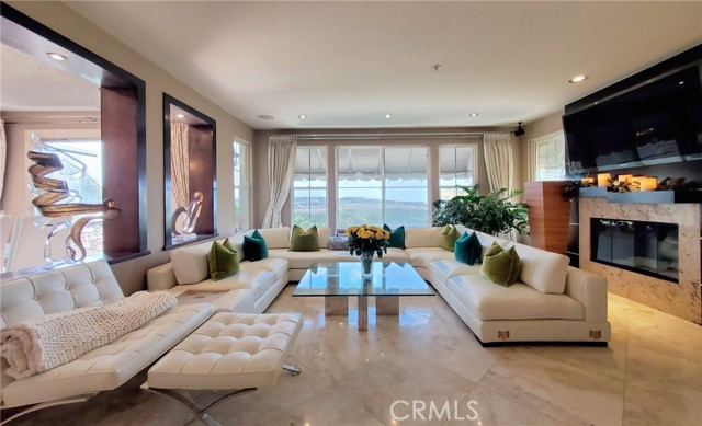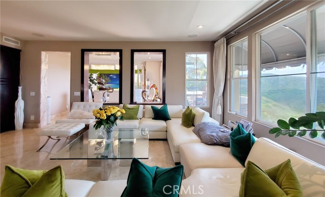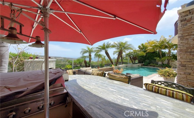 VIEWS, VIEWS, VIEWS. Welcome to 34 SUNSET COVE, the largest floor plan in PELICAN RIDGE, 'CIVITA'-' This fabulous home is located on the highest point in CIVITA, offering a private and quiet setting, dramatic view overlooking CRYSTAL COVE, pristine LOS TRANSCOS CANYON, and the beautiful PACIFIC OCEAN. On a clear blue sky day, the eyes can see as far as the Catalina Island. Spectacular sunsets can be viewed from the balcony without leaving the home. This beautiful executive home includes elegant amenities and luxury interiors at its best, with many uniquely designed and decorated features; such as 24ft X 24ft marble tiles flooring, engineered wood floor, a rare redwood staircase running from top to bottom, recessed lightings throughout, modern faucets hardwares, luxurious lighting fixtures, bathtubs walls are fully covered with granites, including the faces of bathtubs; granite countertops on all dark coffee color cabinets in kitchen as well as in all bathrooms. High-end stainless steel Viking appliances. The main level features decorated iron double door entry, living, dining, and family room with a cozy fireplace. Spacious entertainment room features a wet bar, a wine cellar can hold as many as 300 wine bottles, with access to the outdoor sea-water and heated pool, and a fireplace, quarter-inch glass panels partition run alongside the back. BBQ island features high end DCS grill and a small frid ready for just a chill out or a get-together occasion. Italian design stairs from the outside of the house, from bottom floor to main street level. The top level features a master bedroom with the retreat, the bathroom features a new tech 7 heads steam shower in addition to the bathtub, spacios office that can turn into an addition bedroom with adjacent half bath. Three car garages, 1 single and 1 double, with long panel hardwood. Two separate central AC/heat systems. Other amenities such as Olympic swimming pool, tennis courts and clubhouse are offer by the nearby New Port Coast HOA. A premium shopping center within 5 min driving features the Pavilion supermarket and Wells Fargo bank. Minutes to Fashion Island, John Wayne Airport, Crystal Cove and the world renowned 5 star resort of Pelican Hill. Easy access to free way. Look no further.