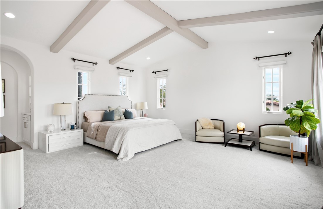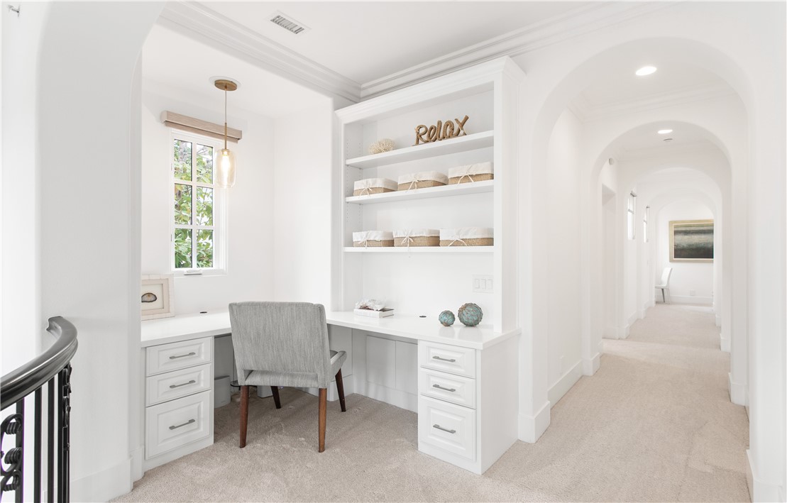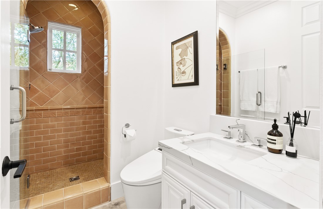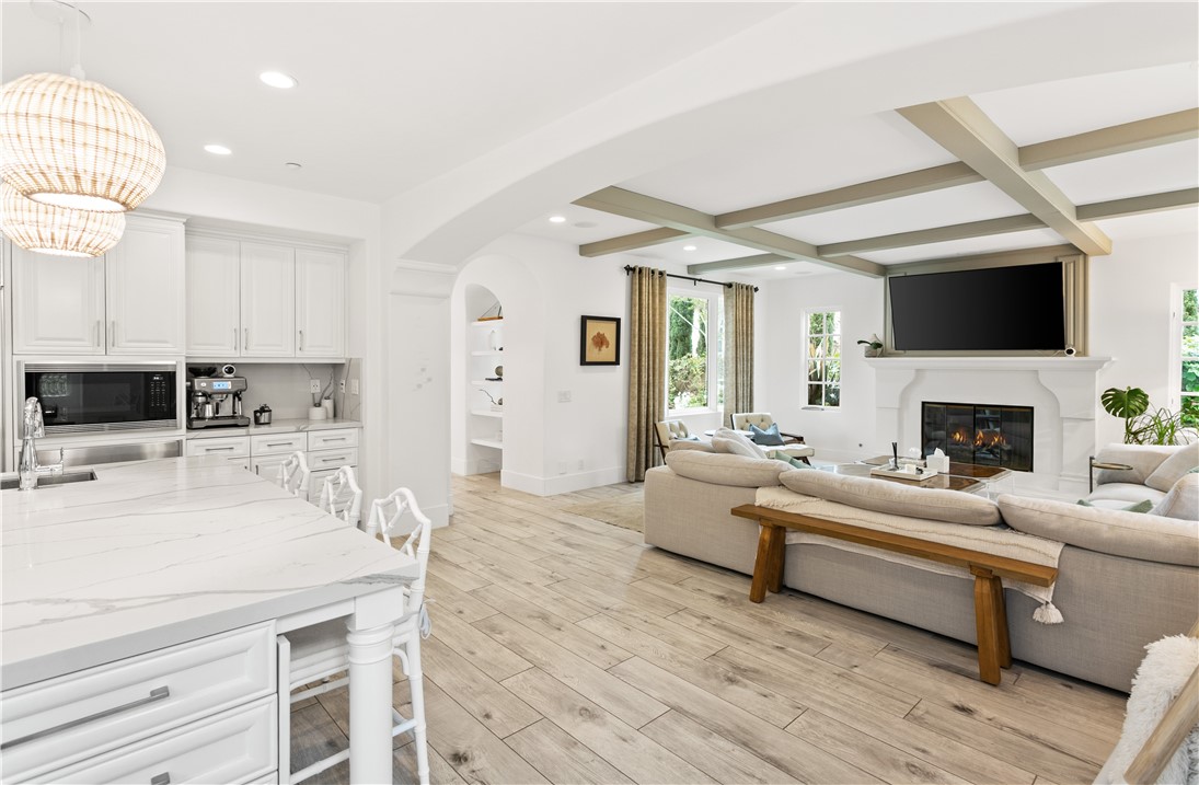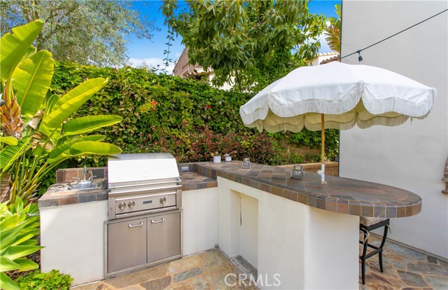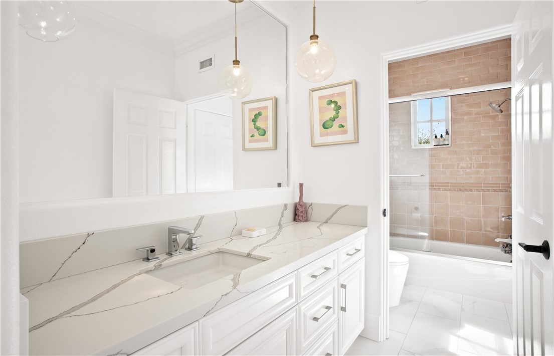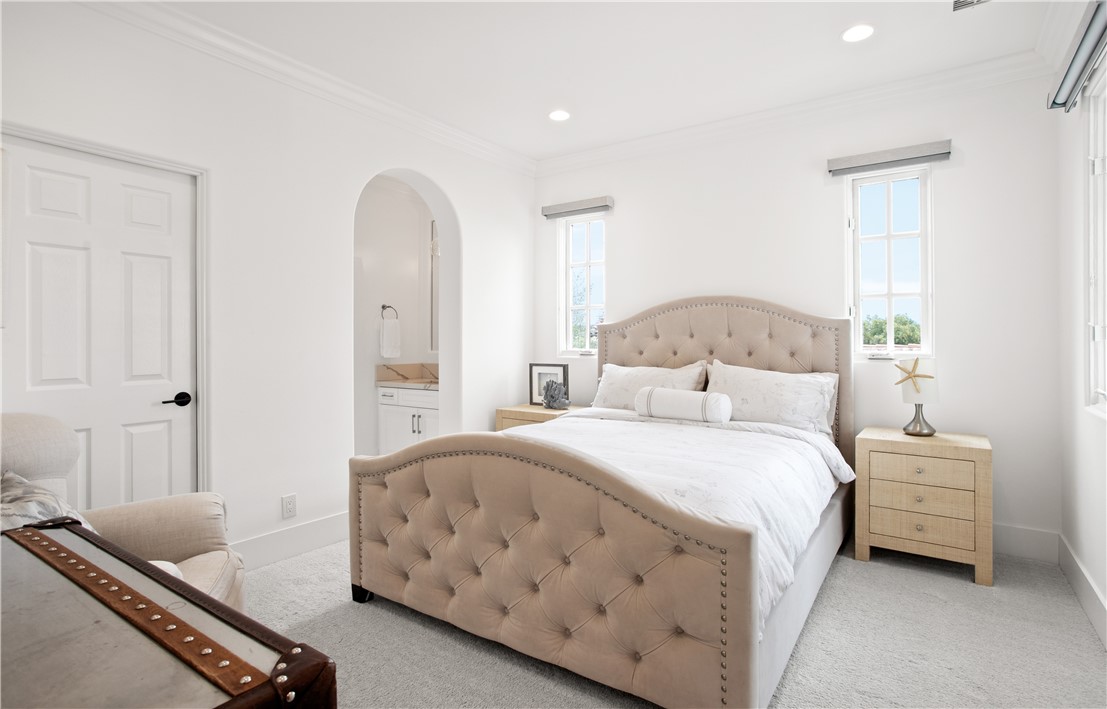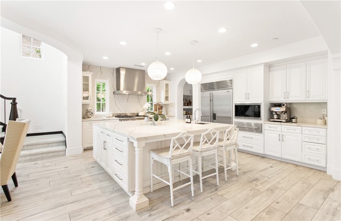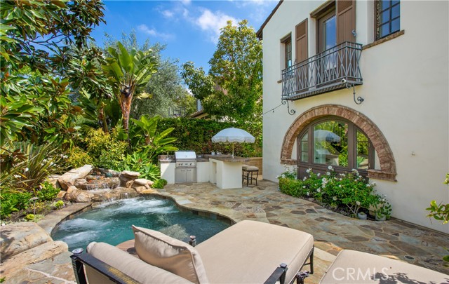 Located in the prestigious guard-gated community of Pacific Ridge in Newport Coast, this beautifully reimagined residence blends timeless architecture with sophisticated, modern design. A gated loggia entry welcomes you in, offering a separate private entrance to the highly sought-after main-level guest suite—complete with its own office or den, ¾ bathroom, and bedroom, ideal for visitors or multi-generational living. Renovated from top to bottom, the home showcases contemporary finishes throughout, including wide-plank flooring, designer lighting, and a chef’s kitchen outfitted with premium appliances: a Wolf range and microwave, Subzero refrigeration, built-in Miele cappuccino maker, and an expansive Calacatta marble center island with dual sinks. The kitchen seamlessly flows into the great room featuring wood-beamed ceilings, a cozy fireplace, integrated surround sound, and abundant natural light. Upstairs, the oversized primary suite offers a peaceful retreat with French doors leading to a private balcony capturing stunning ocean and Catalina Island views. The suite also includes a spacious walk-in closet, luxurious freestanding soaking tub, makeup vanity, and soaring ceilings. Two additional bedrooms, a full laundry room, and a versatile office or library nook complete the upper level. Outside, the wraparound backyard borders a tranquil canyon and is thoughtfully designed for entertaining—with a covered loggia, outdoor kitchen equipped with a Lynx BBQ and refrigerator, built-in fire pit, and a saltwater spa/"spool" with a soothing waterfall feature. The sellers have also recently upgraded the home with brand-new pool equipment for enhanced efficiency and ease of use. Residents of Pacific Ridge enjoy access to exclusive community amenities including a heated Jr. Olympic pool, spa, parks, playgrounds, and scenic hiking and biking trails that lead directly to Crystal Cove and beyond. *VIDEO TOUR AVAILABLE IN ENGLISH, VIETNAMESE & CHINESE*