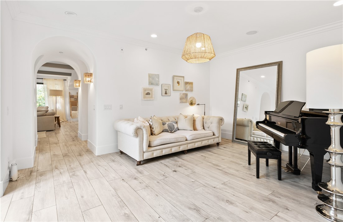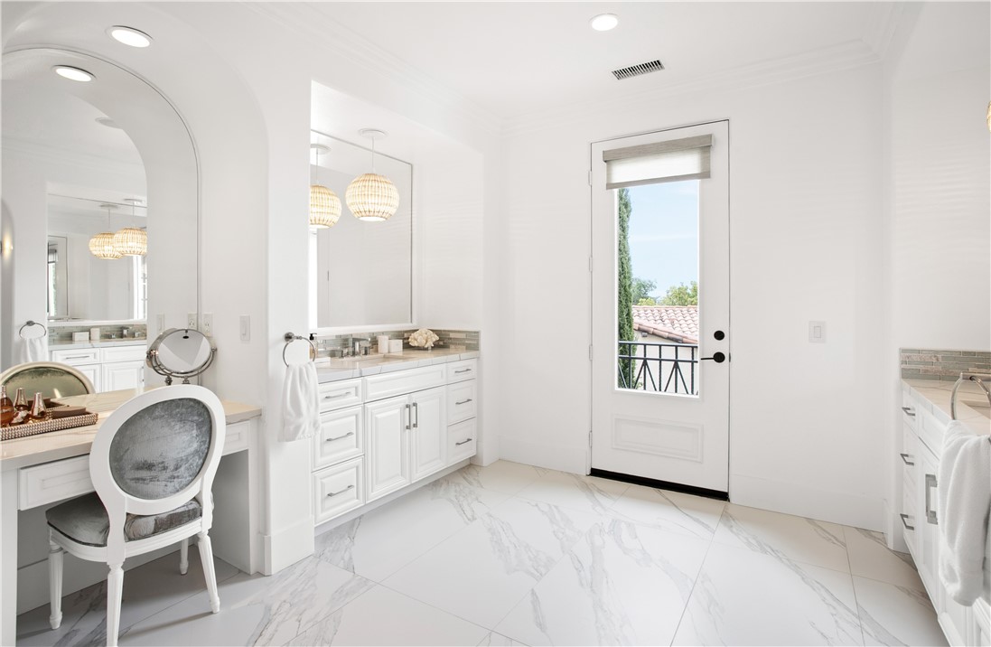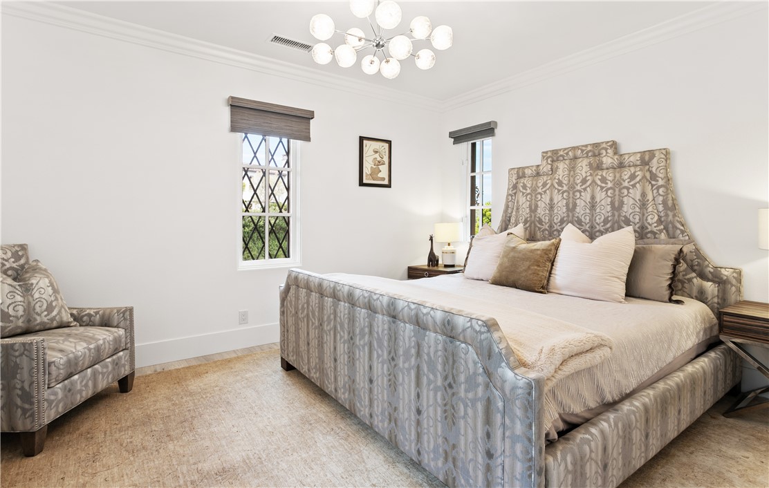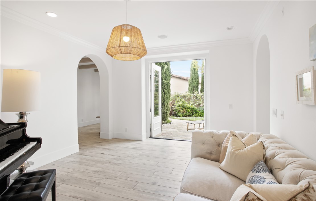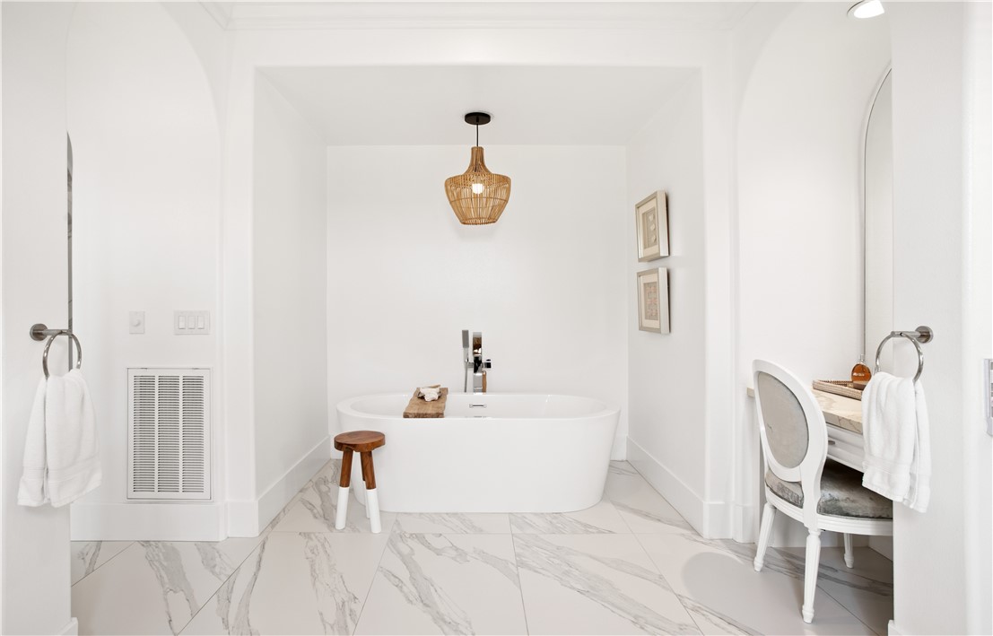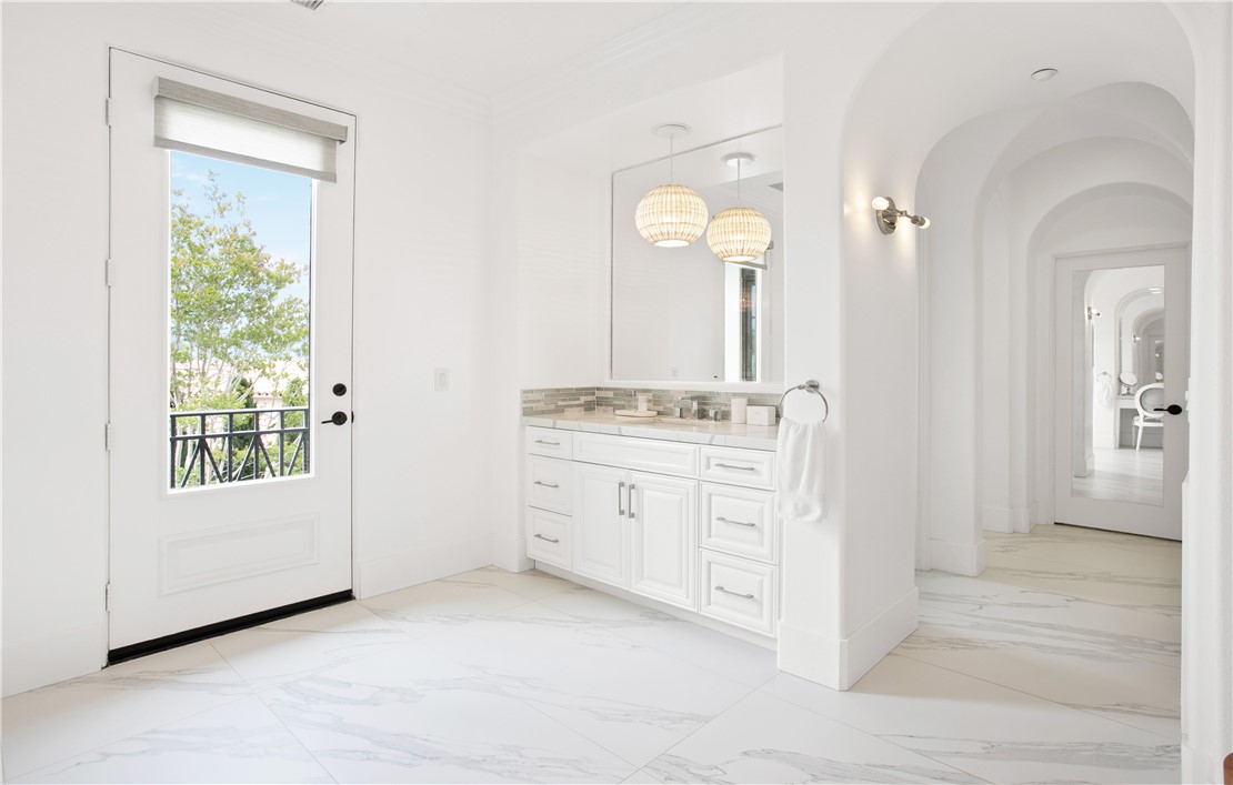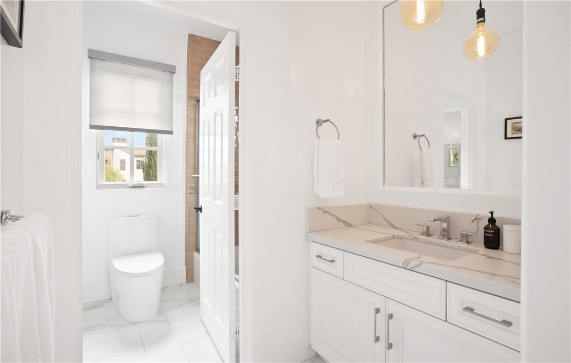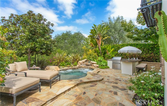 Located in the prestigious guard-gated community of Pacific Ridge in Newport Coast, this beautifully reimagined residence blends timeless architecture with sophisticated, modern design. A gated loggia entry welcomes you in, offering a separate private entrance to the highly sought-after main-level guest suite—complete with its own office or den, ¾ bathroom, and bedroom, ideal for visitors or multi-generational living. Renovated from top to bottom, the home showcases contemporary finishes throughout, including wide-plank flooring, designer lighting, and a chef’s kitchen outfitted with premium appliances: a Wolf range and microwave, Subzero refrigeration, built-in Miele cappuccino maker, and an expansive Calacatta marble center island with dual sinks. The kitchen seamlessly flows into the great room featuring wood-beamed ceilings, a cozy fireplace, integrated surround sound, and abundant natural light. Upstairs, the oversized primary suite offers a peaceful retreat with French doors leading to a private balcony capturing stunning ocean and Catalina Island views. The suite also includes a spacious walk-in closet, luxurious freestanding soaking tub, makeup vanity, and soaring ceilings. Two additional bedrooms, a full laundry room, and a versatile office or library nook complete the upper level. Outside, the wraparound backyard borders a tranquil canyon and is thoughtfully designed for entertaining—with a covered loggia, outdoor kitchen equipped with a Lynx BBQ and refrigerator, built-in fire pit, and a saltwater spa/"spool" with a soothing waterfall feature. The sellers have also recently upgraded the home with brand-new pool equipment for enhanced efficiency and ease of use. Residents of Pacific Ridge enjoy access to exclusive community amenities including a heated Jr. Olympic pool, spa, parks, playgrounds, and scenic hiking and biking trails that lead directly to Crystal Cove and beyond. *VIDEO TOUR AVAILABLE IN ENGLISH, VIETNAMESE & CHINESE*