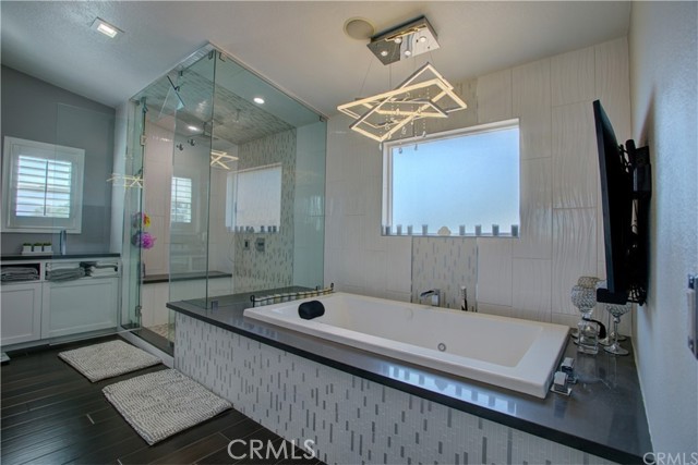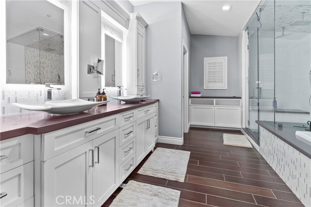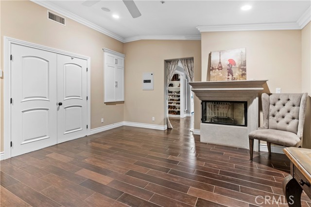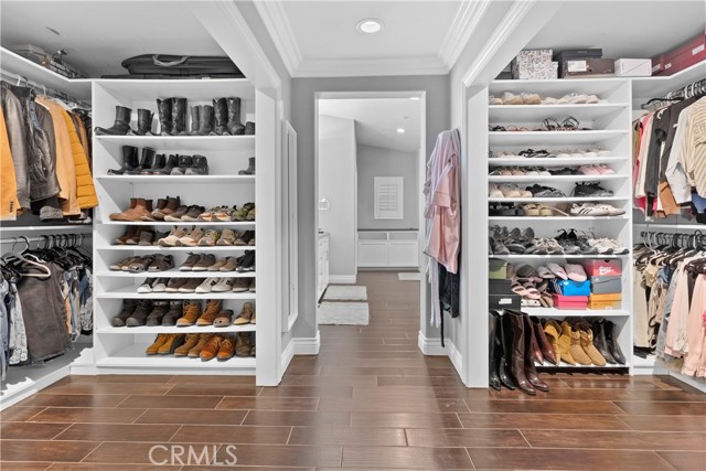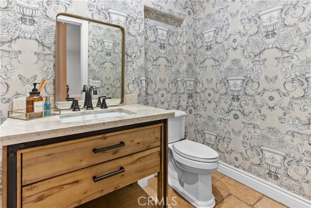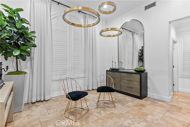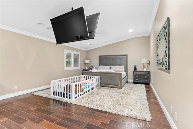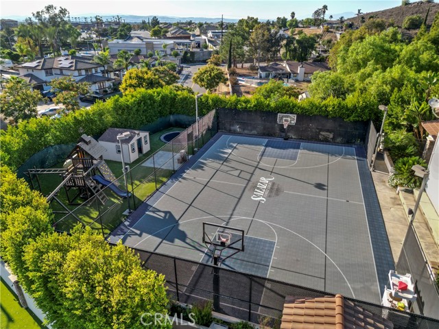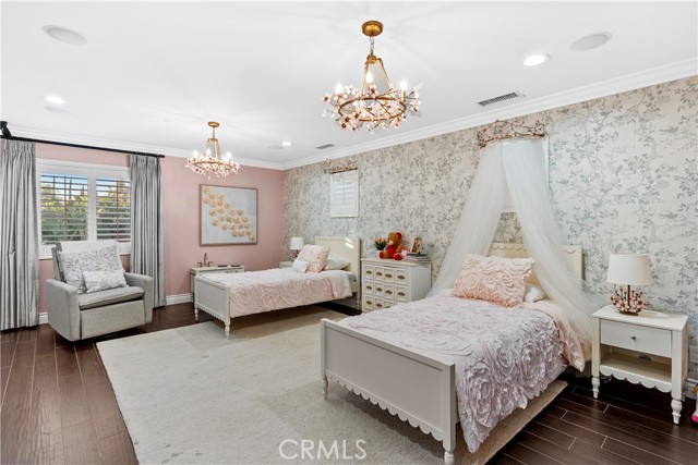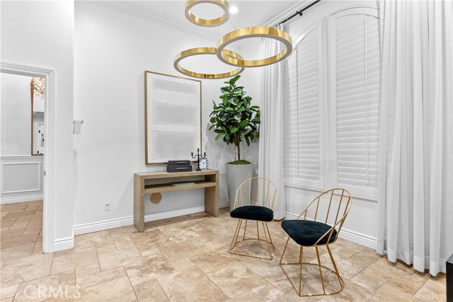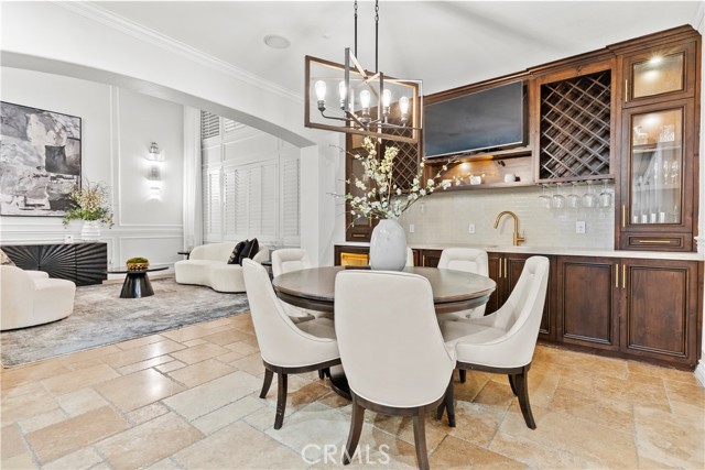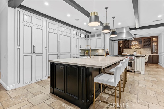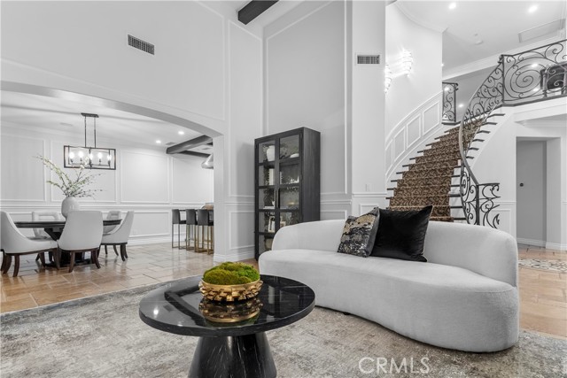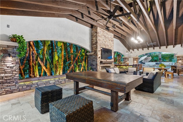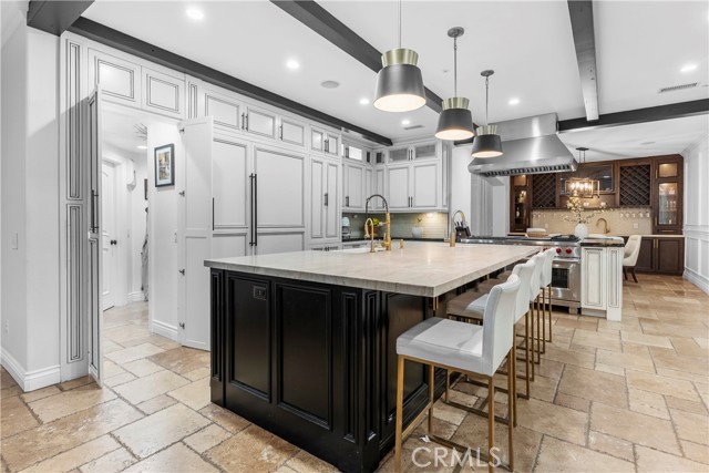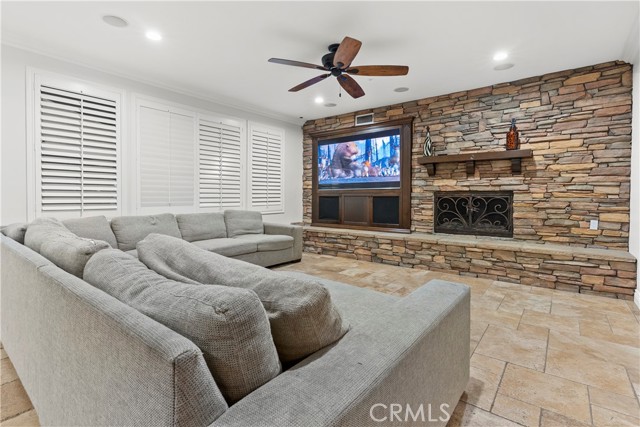 This magnificent 6-bedroom, 5-bath estate welcomes you with lush palm trees, a gated entrance, and grand double wrought-iron doors that open to an elegant mosaic inlay and travertine flooring throughout the first floor. Stunning Norco Hills home, thoughtfully designed with luxury and comfort in mind. The main level includes a bedroom with an en suite bathroom and custom closet organizers, tall windows dressed with long, flowing drapes that fill the formal living room with beautiful natural light, and a sophisticated wet bar featuring a Sub-Zero mini refrigerator, nugget ice maker, lighted cabinets, and built-in wine racks leading into the dining area. The gourmet kitchen offers a built-in Sub-Zero refrigerator, Wolf six-burner range with griddle, oversized island with built-in microwave and warming drawer, walk in pantry and flows effortlessly into the family room complete with a fireplace and custom entertainment center. Accordion doors open to a stunning 1,000-square-foot covered patio with ceiling fans, a gas fireplace, and a top-of-the-line Lynx outdoor kitchen equipped with a grill, hibachi, ice maker, and refrigerator. The backyard is an entertainer’s dream, boasting a Salt water heated pool with fire-bowl waterfalls, custom concrete seating with a fire pit, a full outdoor fitness court, playhouse, built-in trampoline, dog run, and two large storage units. The home also features two 2-car garages with custom cabinetry, an indoor laundry room with granite counters, and ample storage throughout. Upstairs, a mezzanine landing leads to spacious bedrooms with custom closet organizers and a luxurious primary suite with a gas fireplace, dual walk-in closets, illuminated vanity mirrors, dual sinks, jacuzzi tub, and a steam shower with multiple shower heads. This remarkable home blends luxury, comfort, and functionality and comes fully equipped with solar panels for energy efficiency.