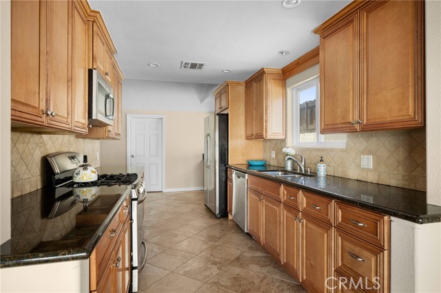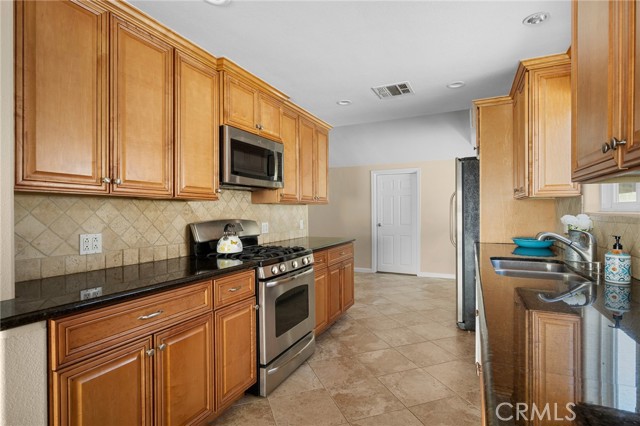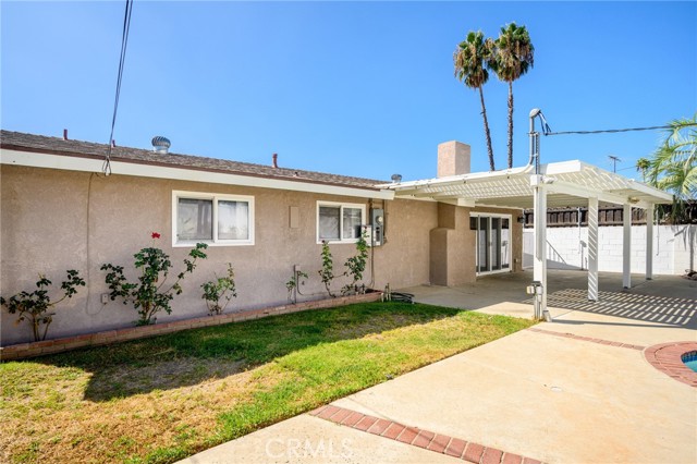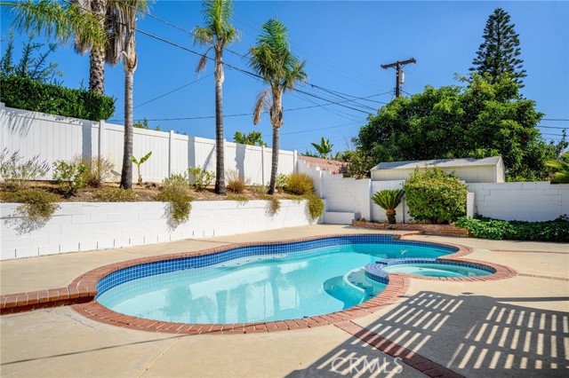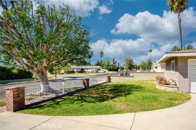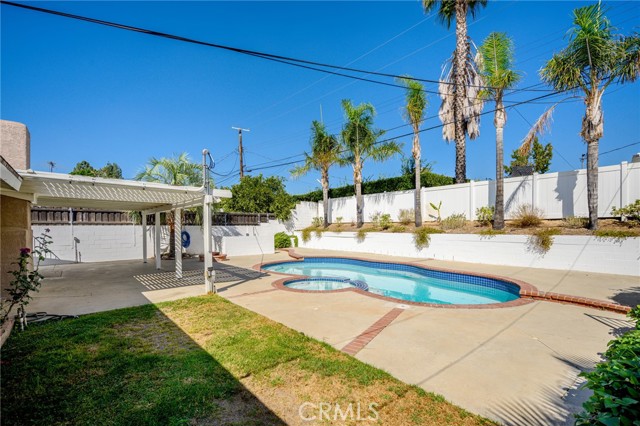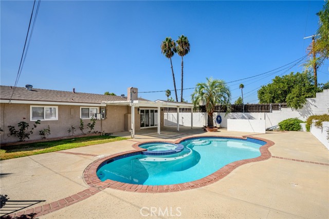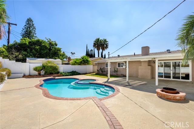 Welcome to your new home in a wonderful neighborhood! This property features a spacious front yard with a well-maintained lawn and plenty of parking space. Inside, enjoy a bright and airy atmosphere with natural light flooding through numerous windows. The living room includes tile floors, a cozy fireplace, recessed lights and vaulted ceilings. The kitchen is well-equipped with granite countertops, stainless steel appliances, double-pane windows, a kitchenette, and pantry. The formal dining room offers a lovely view of the private backyard, making it ideal for entertaining. The layout offers privacy, with all bedrooms located on one side of the house. The backyard is low maintenance, featuring a sparkling pool and spa, a covered patio, a grassy area, and space for a garden. This home offers great functionality and value, conveniently located near freeways, shops, and more. Come and see what this property has to offer!