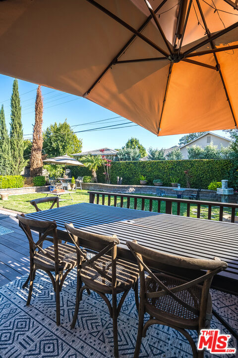Heart of Toluca Lake Upgraded Ranch. Great open floor plan for family and working from home with three bedrooms and three full bathrooms 1611 sq. ft. single level. Recently improved including beautiful hardwood floors throughout, electric and plumbing. French doors transition fireside living room to great room and kitchen with updated cabinets, breakfast bar and stainless steel appliances. French doors open to large entertainer's deck, patio and grassy backyard. Room for pool! Set on 6169 sq. ft. lot. Laundry and HVAC. Family-friendly neighborhood close to Toluca Village, "cool" shops to explore, restaurants and recreation. Convenient to major studios.