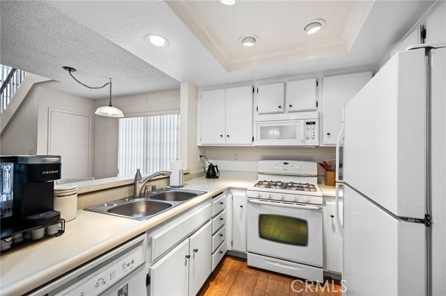 Beautiful, well maintained, two story condo in a private, gated community. This lovely end unit has a 2-car attached garage with direct access and a private patio area in the front. Two bedrooms, two bathrooms, open concept living room with fireplace. Very light and bright. Kitchen has a breakfast bar and a dining area, gas stove/oven, microwave and dishwasher. Laundry area in garage. Beautiful pool and spa area. Downstairs has gorgeous tile floors, upstairs bedrooms both have carpet. Very spacious primary bedroom with vaulted ceilings and a separate dressing area with lots of closets with mirrored doors and a separate toilet and shower area. Central heating and air conditioning, dual pane windows, low HOA. This wonderful home has everything you are looking for and is in a great community located near to shopping and restaurants and close to freeway access.