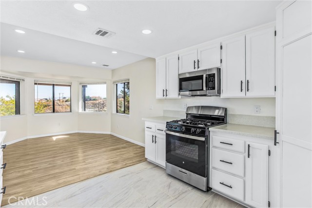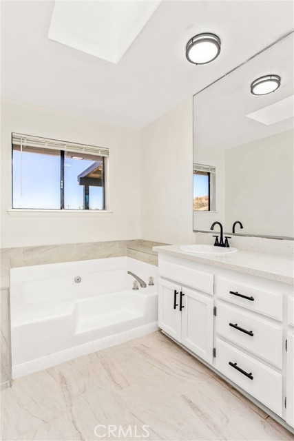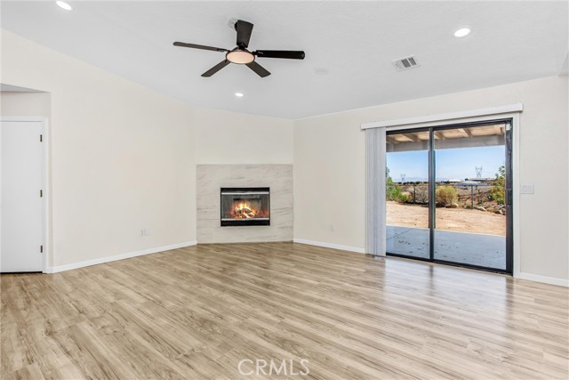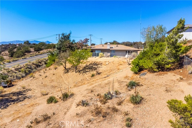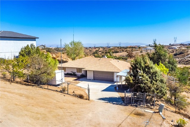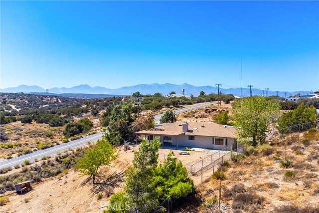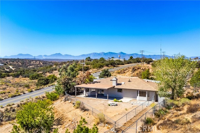 Updated 3-bedroom, 2-bathroom home with attached 2-bedroom, 1-bath ADU on 1.07 acres with hillside and desert views. The main home features laminate wood flooring, recessed lighting, and a remodeled granite kitchen with stainless steel appliances, walk-in pantry, and breakfast nook open to the family room. Family room offers recessed lighting, wood-burning fireplace, and sliding door access to the rear covered patio and fenced yard. Primary suite includes a large walk-in closet, ceiling fan, and remodeled bath with dual granite vanities, tiled walk-in shower, soaking tub, and skylight. Two additional bedrooms feature ceiling fans and share a full bath with granite vanity and shower/tub combo. Attached ADU (converted garage) includes its own separate entrance, kitchen area with sink, spacious living area, two bedrooms with ceiling fans, full bath with tiled walk-in shower, and laundry hookups. The property is fully fenced with a covered front carport, usable lower area with chicken coop, and plenty of open space for future use. Conveniently located with beautiful natural views, this home offers versatile living and move-in-ready updates.