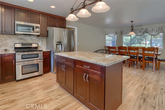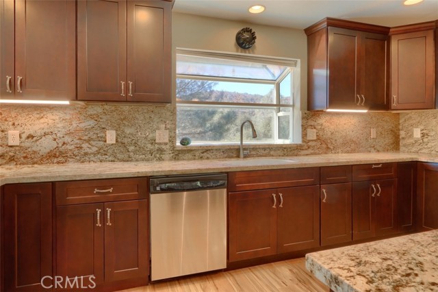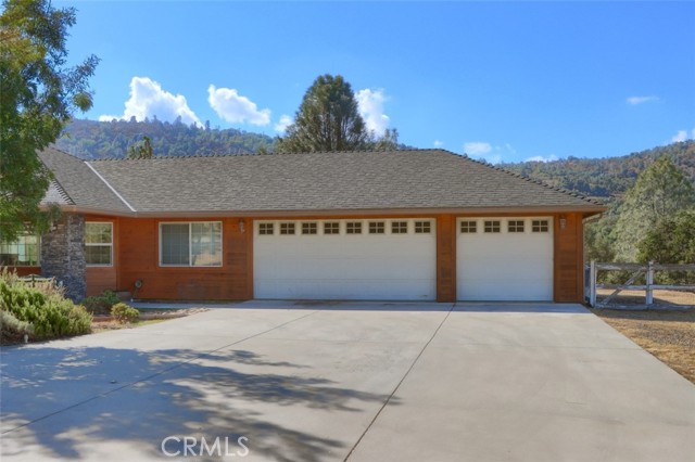 Gorgeous mountain views await you at this beautiful 4 large bedrooms, 3 baths home with an updated kitchen! The light and bright main living area with views from the sliding glass door and vaulted ceiling has an open flow from the living room, dining room and kitchen. The kitchen has a center island with breakfast bar, lots of granite counters and backsplash, recessed lighting, stainless steel appliances, garden window and extra cabinets for storage. The bedrooms are large with bathrooms and the primary bedroom has a walk-in closet, 2 sink vanity, and separate shower and bathtub. The spacious back patio offers more lovely views and a wonderful place to entertain or barbecue for family and friends! Beautiful private setting with a concrete driveway to a 3 car garage! 25 minutes to southern Yosemite National Park entrance and less than 10 minutes to Bass Lake. This home has details and features that you need to see! Come and see the views for yourself!