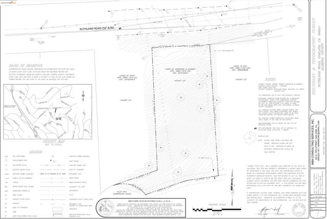 Prime opportunity to build in Oakland’s desirable Montclair neighborhood (94611). This 9,450 sq ft vacant lot comes with approved planning (PLN21079) for a three-story, 2,777 sq ft single-family residence featuring a two-car garage and an elevator. The approved design provides modern hillside living with expansive space and functionality, saving months of planning and review time. The parcel is zoned RH-4 with S-14 and S-9 overlays, offering potential for customization or future additions. The lot is gently sloped with utilities available at the street, located in a low liquefaction risk area outside of any fault, flood, or wildfire zones. A rare shovel-ready opportunity in the Montclair hills, just minutes from Montclair Village, Highway 13, and top-rated schools. Perfect for developers, investors, or an owner-builder ready to bring an approved project to life.
