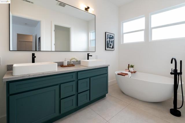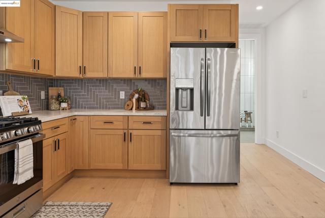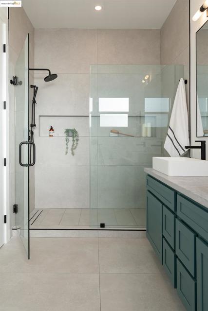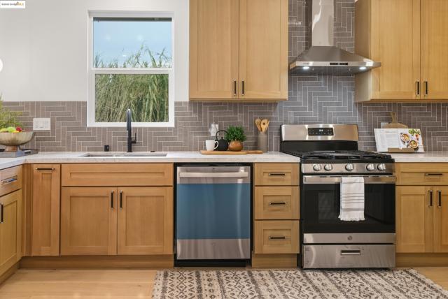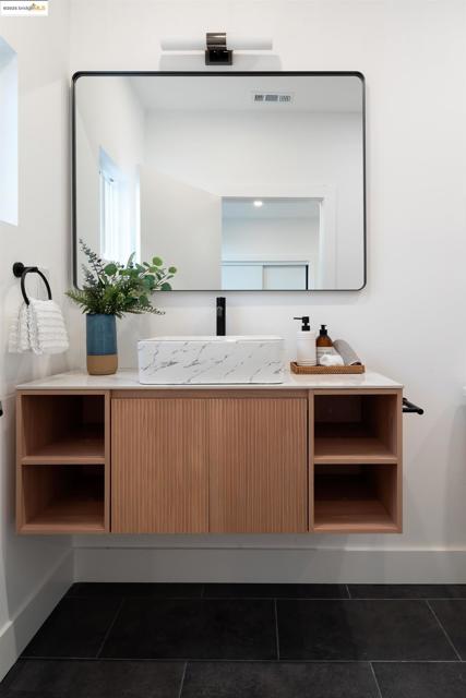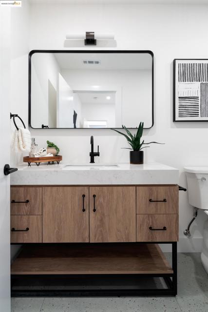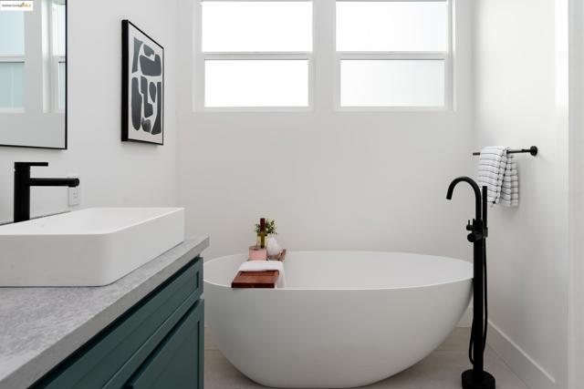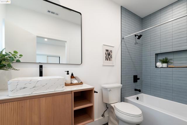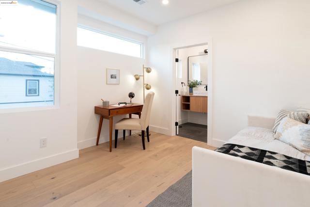 Welcome to this stylish 3 bedroom, 3.5 bath home on the Oakland/Emeryville border. Updated throughout, each bedroom includes its own en-suite bathroom—ideal for guests or multi-generational living. The open-concept layout features a bright living area and a modern kitchen with sleek finishes and stainless steel appliances. Enjoy off-street parking with both a driveway and attached garage, plus a private yard for relaxing or entertaining. Located in the highly convenient NOBE corridor, just minutes to Emeryville shopping, local cafés, BART, and commuter routes. - BROKERS TOUR: THURSDAY 11/13, 2PM-4PM -