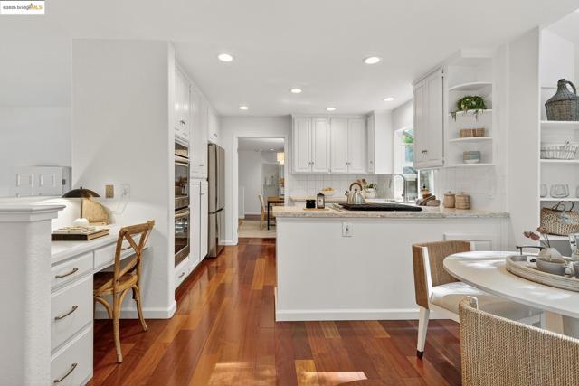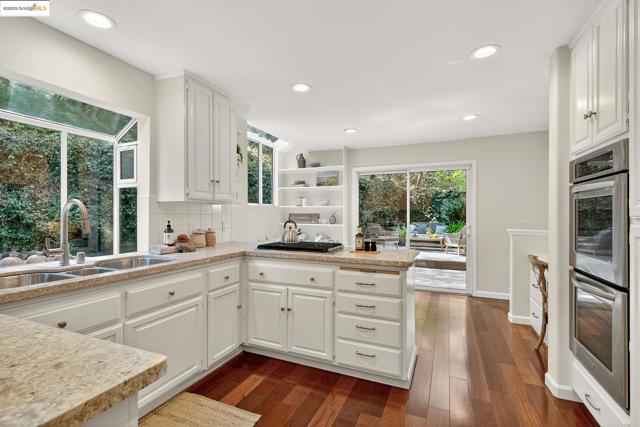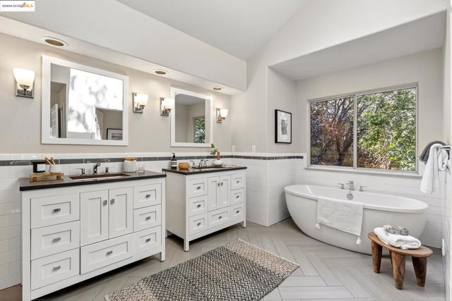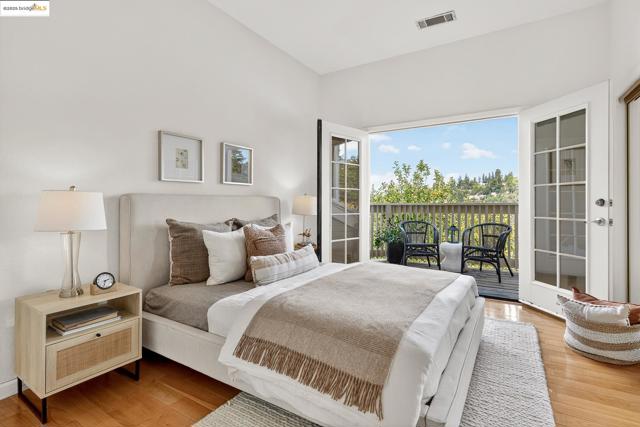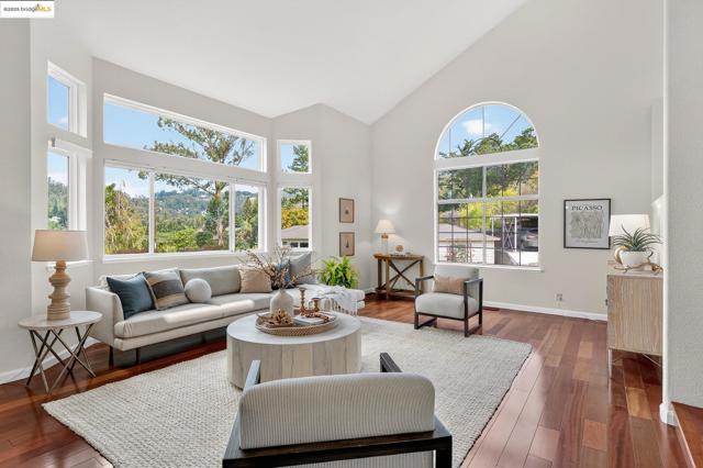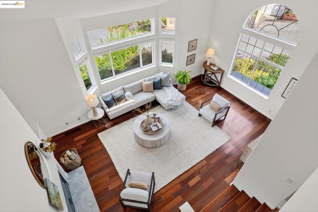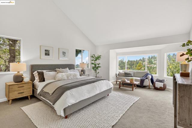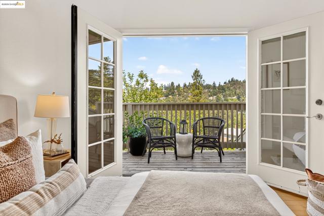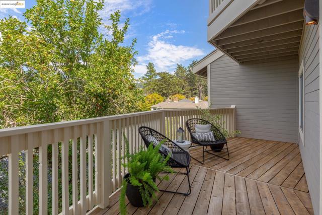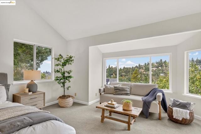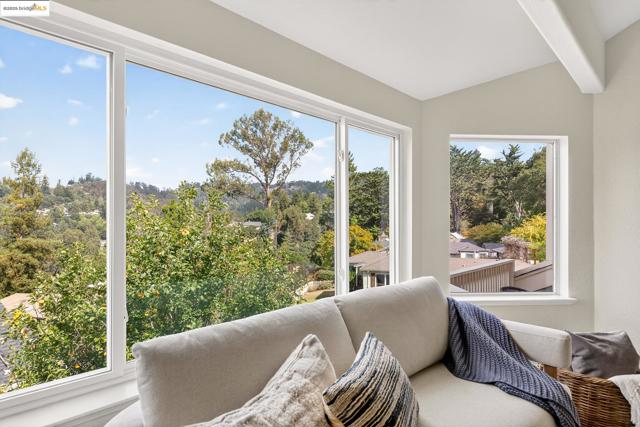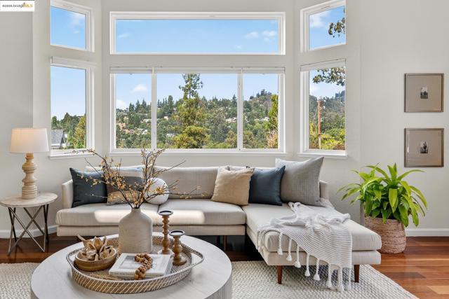 Stunning in design—modern, spacious, and filled with natural light. This split-level home offers both “wow†moments and quiet intimate spaces. The soaring-ceiling living room greets you with hillside vistas, while the updated kitchen with breakfast nook flows to a private deck, perfect for family dinners or larger gatherings. A separate family room with a fireplace and its own deck invites relaxed evenings, and the adjacent office easily doubles as a guest room or creative space. Upstairs, the generous primary suite captures serene garden scenes and distant San Francisco Bay views, complete with a sitting area, large walk-in closet, and spa-like bath. Three additional bedrooms and a full hall bath provide flexibility, including one with a private terrace and sparkling city outlook—ideal for reading in the sun or enjoying a quiet cup of tea. A rare three-car attached garage with ample storage. This home is on a peaceful Oakland Hills cul-de-sac with no through traffic, the setting is as tranquil as it is convenient. Children stroll to nearby Thornhill Elementary, deer occasionally wander past, and neighbors gather for impromptu block parties. Yet just minutes down the hill, Montclair Village offers cozy cafés, farmers’ markets, and charming boutiques.