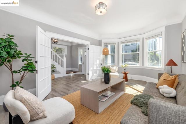 Welcome to 1837 7th Ave, an Ivy Hill gem minutes from Lake Merritt. This beautifully home blends character with thoughtful updates for the perfect mix of charm and efficiency. Sunlit living spaces feature updated floors and timeless architecture, with French doors opening to the living room and original pocket doors leading to the dining room with built-in cabinetry. The updated kitchen is ideal for hosting, with stainless steel appliances and an adjacent laundry room with LG washer/dryer and a full bath. Upstairs, a spacious primary en-suite offers a large bath, joined by two more bedrooms and another full bath. Original hardwood floors run throughout the upstairs, adding warmth and character. Upgrades include fully paid-off solar panels and a high-quality electrical panel for long-term value and efficiency. Outside, enjoy a private backyard retreat with a remodeled deck, fruit trees, and a large gazebo, perfect for entertaining. A roomy basement allows for more storage, income opportunities, or a future remodel. An electric gate provides secure off-street parking and a spacious driveway. Conveniently located near parks, shops, and commuter routes to downtown Oakland and SF, this is a rare opportunity to own a move-in ready sanctuary in Oakland’s beloved Ivy Hill neighborhood.