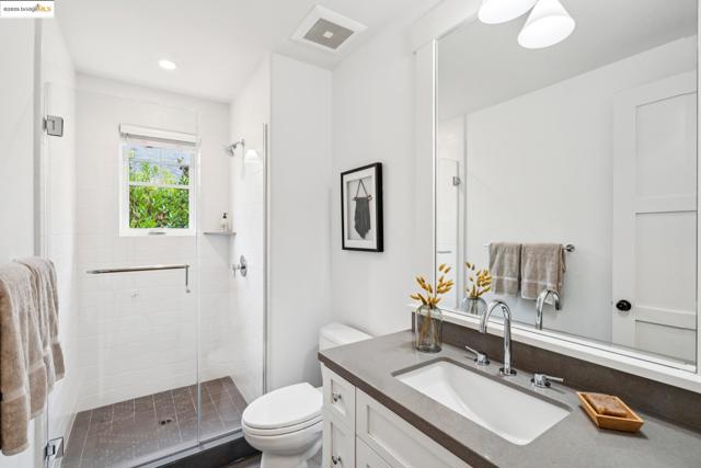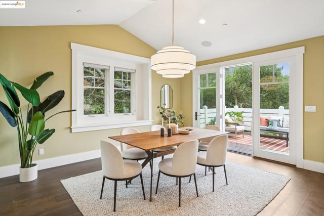 8yr old level-in contemporary Craftsman home designed/built by Mark Becker in 2017 -- on a quaint private lane with a small HOA of 8 homes. Upper level: Zero steps into an open-plan great room with soaring vaulted ceiling, views of Mount Tam, a luxury kitchen with a generous island, doors to a private outdoor deck, a deluxe primary suite with fireplace and a view (perfect for down-sizers), plus an office, 2 full bathrooms, and interior access to 2-car garage. Even the garage has a vaulted ceiling and clerestory windows! Lower level: offers 2nd huge open living area with kitchenette, 2 guest bedrooms, 1 full bathroom, storage, wine cellar, and separate entrance! Layout offers flexibility for 2 parties with 2 entrances. Impeccable condition! Fully loaded with owned Solar, 2 Tesla storage batteries, TV’s + Sonos speakers, window treatments, and closet organizers. Low maintenance property with Village Market just down Clarewood Drive, Claremont Country Club & great schools nearby, minutes to Rockridge shops and restaurants.