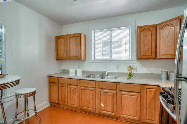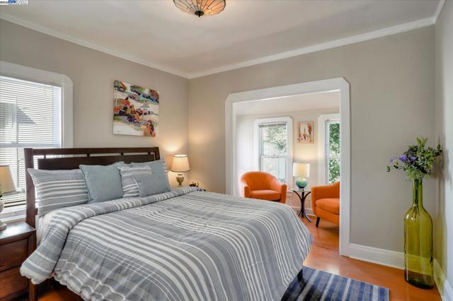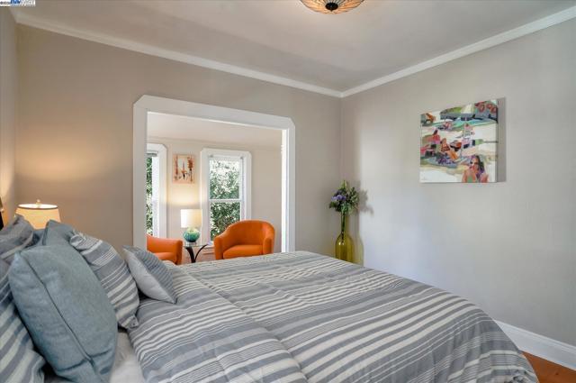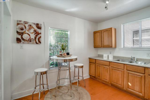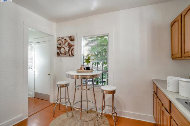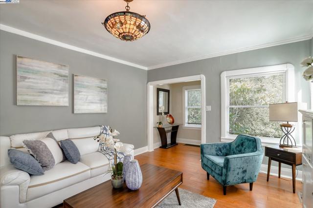 Welcome to this 2-bedroom, 1-bath Spanish Bungalow tucked inside a serene gated community near Sausal Creek. Bursting with period details and original charm, this bountiful bungalow offers gleaming hardwood floors, an inviting fireplace, and built-in shelving that set the tone for cozy yet sophisticated living. The split-level floor plan features spacious bedrooms, arched doorways, and a sun-filled sitting area off the primary bedroom—perfect for a home office, reading nook, or creative space. The quaint eat-in kitchen boasts ample counter space, and with an in-unit washer & dryer, everyday living is made easy. An attached garage plus street parking adds convenience, while the quiet street location offers peace just minutes from Fruitvale BART, as well as easy access to highways 880 & 580. Priced to sell, the opportunity is as smart as it is stylish. Buy now and enjoy for years to come!
