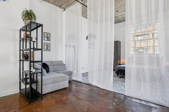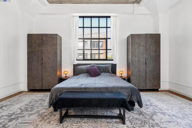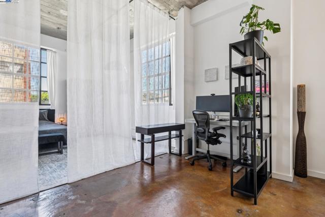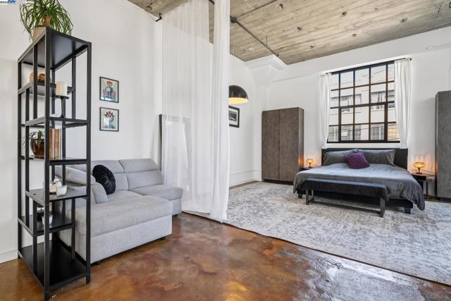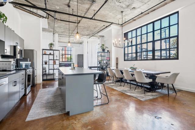 With a rich history, this nearly 2000 sqft. industrial loft provides a brilliant canvas to create your own amazing story. Formerly Safeway’s 1920’s corporate warehouse this rare property houses the original walk-in corporate safe… but save your money elsewhere and enjoy the striking chandelier suspended in your bedroom, office or library. Rugged industrial chic has never felt so fresh with oversized black enamel pendants, chandeliers, and crisp white walls. The towering concrete ceilings, pillars, and steel framed windows suggest the historical story, while the modern updates suggest you can absolutely have it all. The floorplan is effortless, the space, simply enormous. The kitchen is simple, practical, anchored by a large island where your friends are sure to gather. Up the stairs find your secret hideaway, an open loft might be the perfect playground for media, hobbies, or a Zenful retreat. Two large closets give ample storage, or perhaps some coats and a near perfect walk-in wine cellar. In-unit laundry with secured two-car parking and a large basement storage closet sweeten the deal. Fourth Street Lofts is an exciting community in the fabulous Jack London Square neighborhood. Originally a 1923 Safeway Corporate warehouse, this complex’s rich history feels iconic.