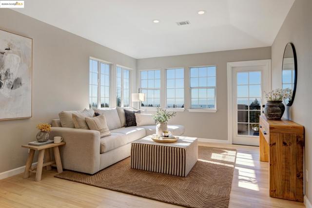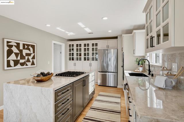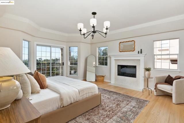 Stunning Bay View Home with Mediterranean Elegance. Experience breathtaking Bay views from this exquisitely updated residence showcasing serene Mediterranean details throughout. This exceptional property features soaring ceilings that create an airy, spacious atmosphere flooded with natural light. The chef-inspired kitchen is a showstopper with stunning quartzite island, countertops, and backsplash—designed for both functionality and style. The home offers four spacious bedrooms and three full bathrooms. Cozy up by one of two fireplaces—one in the living room and another in the primary bedroom. Two expansive decks extend your living space, perfect for entertaining or relaxing while enjoying spectacular views. The basement provides abundant storage, and a two-car garage offers additional parking. Situated in a prime central location, you'll enjoy easy access to shopping, dining, and entertainment. Commuters will appreciate convenient freeway access, while nature enthusiasts will love the proximity to majestic redwood groves and scenic hiking trails. This rare combination of luxury finishes, spectacular views, and unbeatable location creates an exceptional offering. Don't miss your chance to own this Mediterranean-inspired gem where everyday living feels like a vacation.