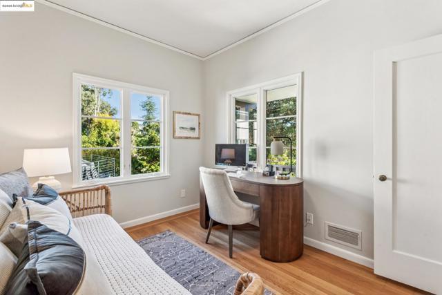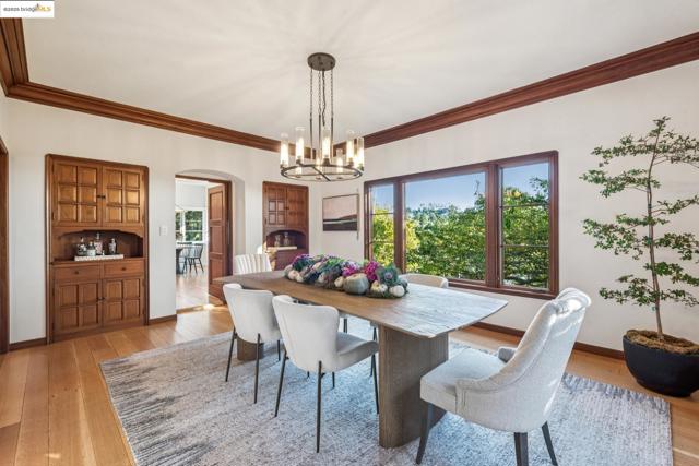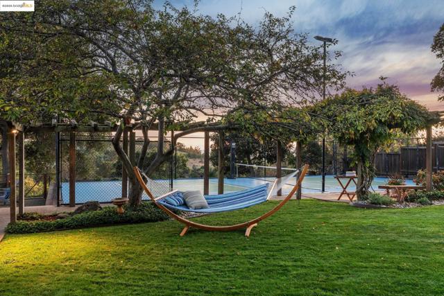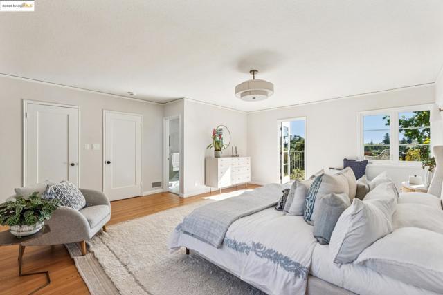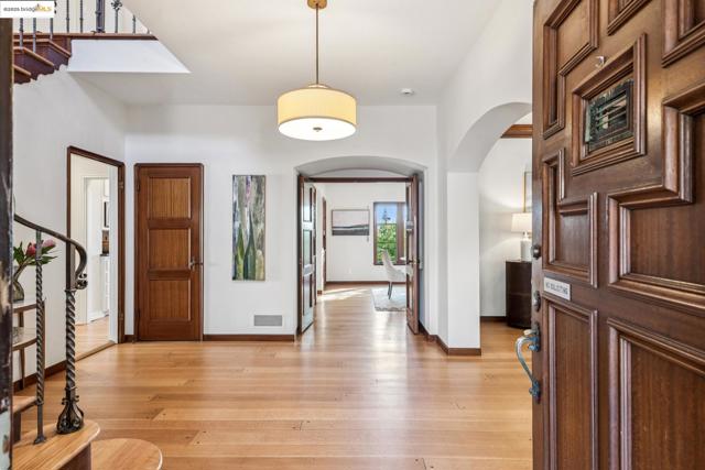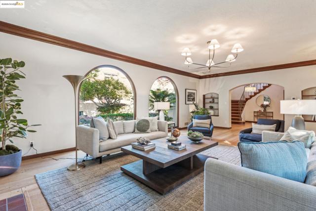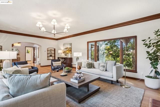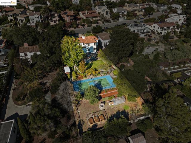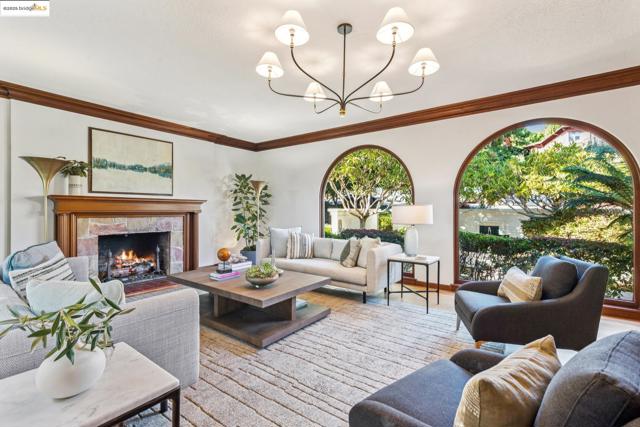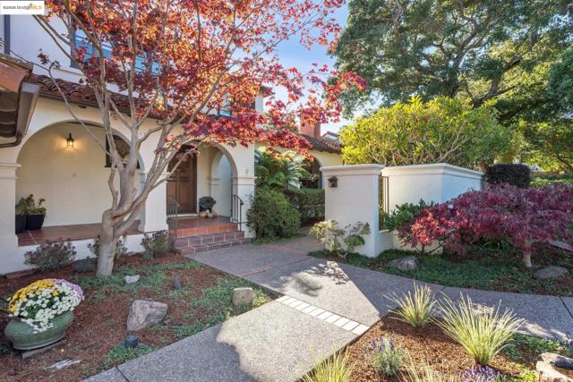 This grand Mediterranean-style home on a flat, almost half-acre lot with a pickleball/basketball court in one of the most desired parts of Upper Rockridge is a rare gem indeed. Built for Oakland Mayor Herbert L. Beach in 1941, this 4-bedroom, 3.5-bathroom entertainer’s paradise survived the Oakland Hills Fire of 1991, and has been the site of innumerable weddings, neighborhood picnics, and dinner parties. Mahogany trim, doors, and built-ins on the main floor adorn the living and formal dining rooms. The large primary suite features a balcony overlooking the sprawling backyard and a sweeping vista of hills. A downstairs den and full laundry room open to an expansive covered patio. This lovingly maintained home awaits an owner to continue its enduring legacy as a neighborhood centerpiece.