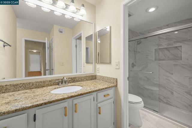 Discover the charm of a delightful two-bedroom, two-bathroom home nestled in a gated community in the Oakland Hills. Spanning 1,123 square feet, this residence features two master suites with ensuite bathrooms and walk-in closets, a modern kitchen with granite countertops and stainless-steel appliances, and dual pane windows for added comfort. Assigned 2 parking spots, covered and uncovered. Enjoy the warmth of the fireplace and your morning cup of coffee on the spacious patio. This community offers an array of amenities including a pool, sauna, fitness center, tennis courts, and a playground. Strategically located near major roads like Hwy 580, a variety of restaurants and trails, this home offers both convenience and a serene lifestyle. Let's make this home yours today!