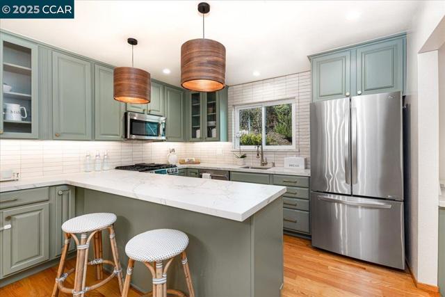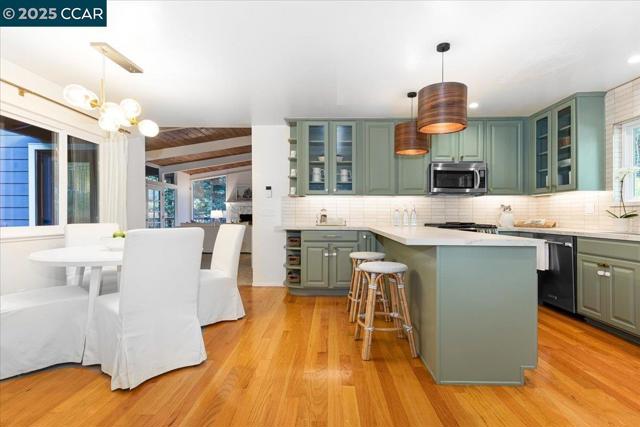 TRANSPARENT PRICING! Secluded single-level retreat tucked in the Oakland hills above Montclair Village, offering an open and inviting floor plan ideal for modern living. Step inside to find a light-filled living space with large picture windows framing the beautiful redwoods and scenery. The new homeowner will enjoy the updated kitchen, remodeled in 2024, showcasing premium Dekton countertops, new cabinetry hardware, modern lighting, and stainless-steel appliances - including a new dishwasher, sink, faucet, and range making it both functional and beautiful. The layout is ideal, with bedrooms thoughtfully separated from the main large entertaining spaces to create both privacy and flow. Updates in the last five years include a new bolted foundation, replaced sewer lateral, dual-pane windows, EV charger, new water heater, and a smart Nest thermostat — ensuring peace of mind and efficiency for years to come. Located minutes from Montclair Village shops, dining, commute and trails, this home blends hillside serenity with convenient access to everything the East Bay has to offer.