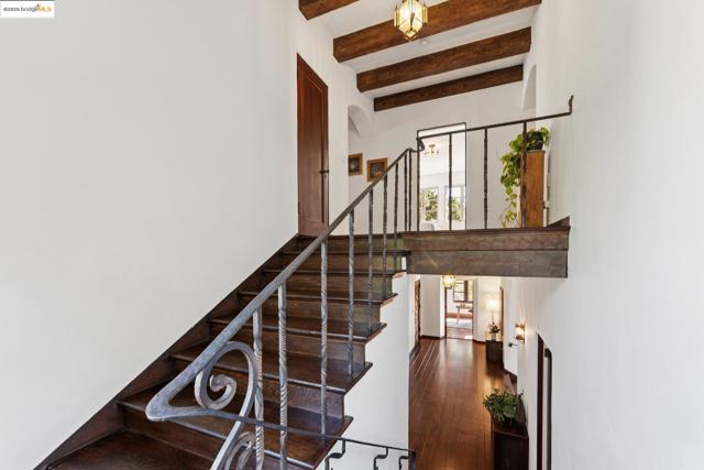 Exquisite 1928 Spanish Revival estate by renowned local architects and engineers Reed & Corlett, this grand and distinguished residence evokes an era of timeless craftsmanship and historic artistry. Perfectly poised along the Piedmont border in one of Oakland’s most prestigious enclaves, the property spans over half an acre of level, enchanting gardens amongst majestic oaks, offering serenity, privacy, and sweeping Bay views from nearly every vantage. Enjoy level-in entry to an expansive 5-bedroom, 3.5-bath primary residence, where a brilliant floor plan allows graciously proportioned formal spaces to flow effortlessly together, all bathed in natural light and enriched with period detailing throughout. A breathtaking Great Room of heroic scale, crowned by soaring hand-hewn beams, commands a sense of romantic permanence, while the formal dining room, adorned with hand-painted artesonado ceilings, showcases the artistry of its era. Beyond the main home, a private ensuite casita, artist’s studio, and convenient level-in 3-car garage complete this regal property—uniting architectural pedigree with refined livability for today’s modern lifestyle. Minutes from Montclair Village, Park Blvd, and SF/Hwy access. A rare legacy estate for generations to come.