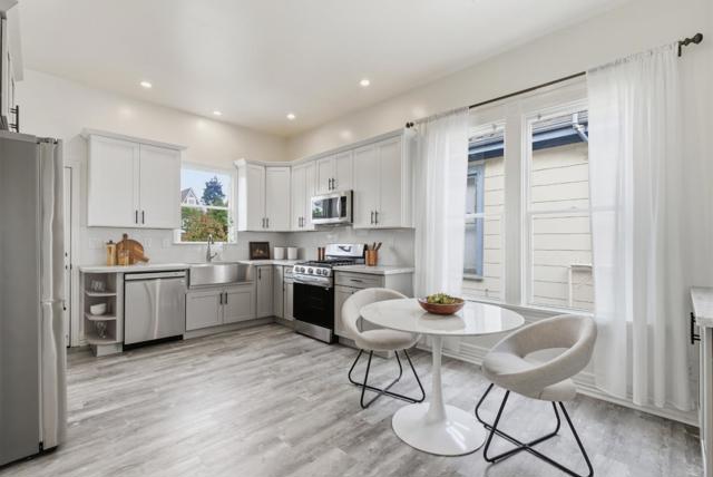 Welcome to 740 59th Street, a beautifully reimagined Victorian duplex offering 2159 sq ft of living space across two fully upgraded residences. With 5 bedrooms and 2 baths, this timeless property perfectly blends historic character with modern sophistication. Ideal for large families, multi-generational living, or smart investors, the home offers the flexibility to live in one unit and rent the other, creating a rare opportunity to build equity while enjoying elevated living. The upper residence 2bd 1ba exudes warmth and charm, featuring two sunlit bedrooms, a formal dining room, and a refreshed kitchen complete with new appliances and soaring ceilings that highlight the homes classic Victorian details. The lower unit 3bd 1ba has been fully revitalized from top to bottom, showcasing brand-new flooring, modern finishes and fixtures, updated countertops, and a complete suite of new appliances. Both residences include stylish bathrooms and in-home laundry for convenience and comfort. Additional highlights include a large attic for storage and a generous backyard with room to entertain, garden, or expand with an ADU. 59th Street is more than a home. It is a lifestyle investment that balances style, comfort, and income potential, ready for its next chapter.