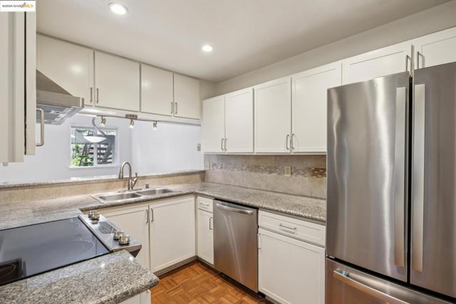 Nestled in a tranquil Oakland Hills setting adjacent to Leona Canyon Regional Open Space Preserve, this light-filled, level-in condo offers comfort and privacy with two ensuite bedrooms, each featuring a walk-in closet and opening to the private patio. The bedrooms are thoughtfully positioned on opposite sides of the open-concept living area, creating ideal separation and privacy. The inviting living space includes a fireplace, bamboo floors, and recessed lighting. The kitchen opens to the dining area and breakfast bar, offering an easy flow for everyday living and entertaining. Enjoy in-unit laundry, a community pool, and a seasonal pool—all within a serene hillside community with direct trail access and easy freeway connectivity.