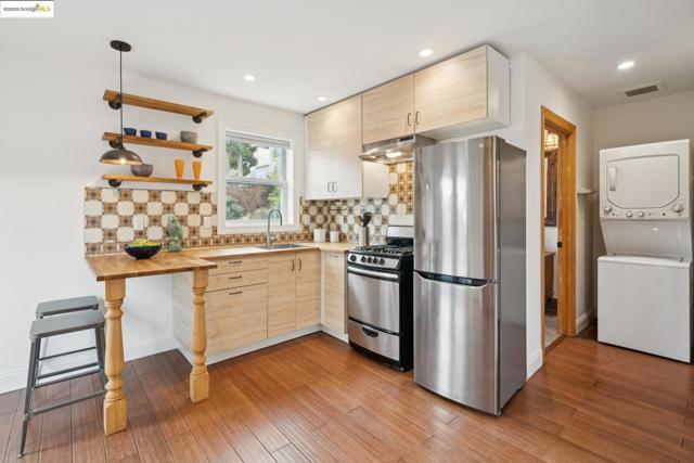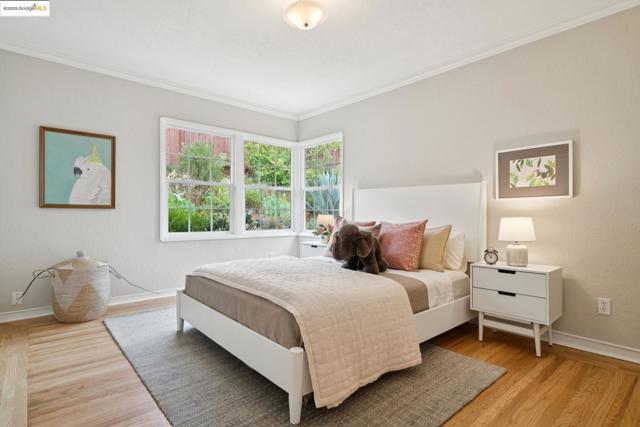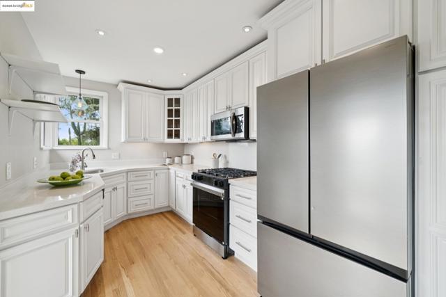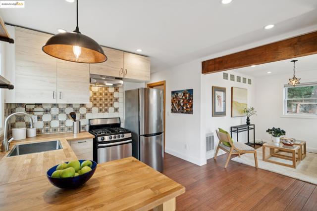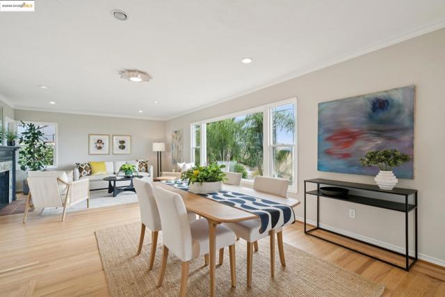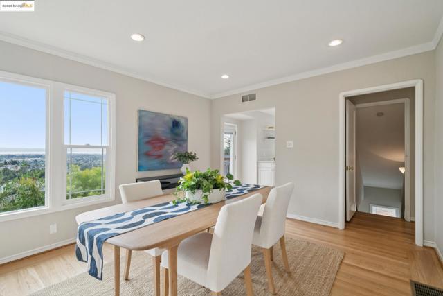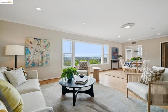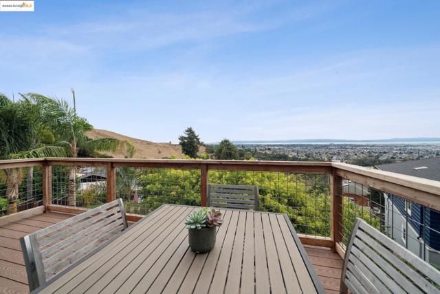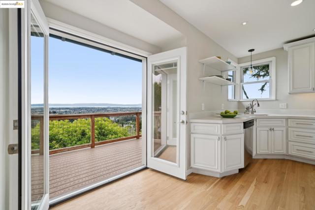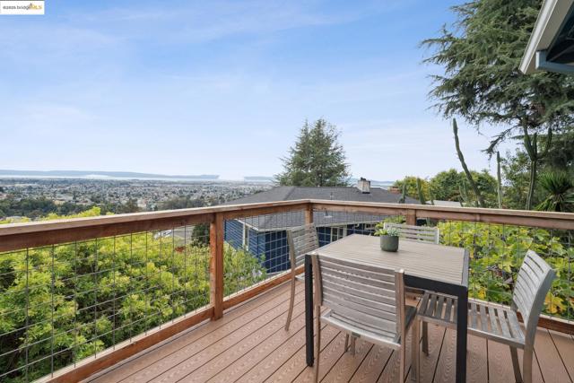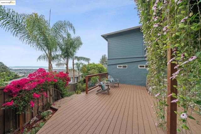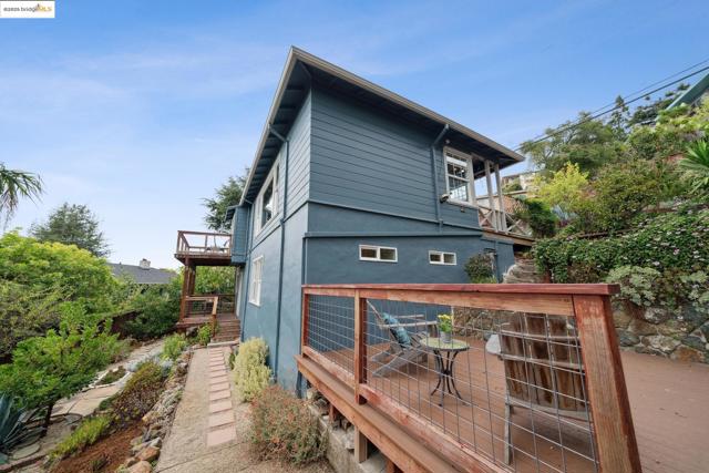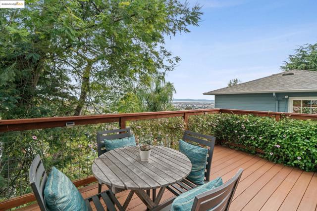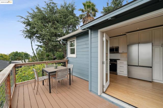 THE WOW FACTOR IS HERE! A spectacular VIEW home filled with gorgeous updates and a stand alone ADU with VIEWS! Tucked into the Oakland Hills, this lovely home includes an updated main house with 3 bedrooms, 2 baths, 3 decks, large front patio and a landscaped fenced yard. The main level features 2 bedrooms and 1 updated bath, living and dining room, a wall of windows to enjoy the always spectacular and ever changing views. Be wowed by the stunning sunsets! A refreshed kitchen features new quartz counters, brand new hardwood floors, new stove, fridge and microwave; perfect for the home chef. A cozy spot serves as the perfect breakfast nook and opens to a deck to enjoy the VIEWS! The lower level includes a private primary retreat with large closet, 2 storage areas, full bath and a kitchenette. The laundry is located on this level. Doors open to the large lower deck. The terraced lower garden is full of native plants and flowers. This large property includes a bonus ADU/CASITA with one bedroom, a full bath, kitchen and living room. Your guests will feel so special staying here with its private deck and views of the Bay. Other features include owned solar, multiple interior storage areas, sewer compliant, no knob and tube, as well as 2 car garage parking. A SPECIAL HOME!