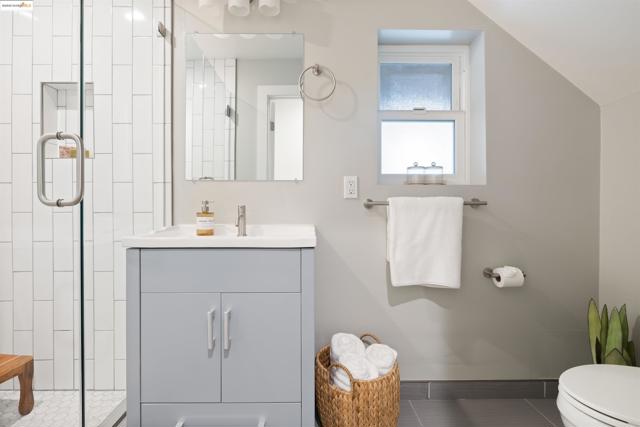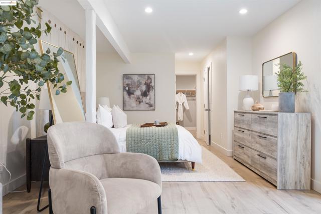 Perched atop the King Estates hills sits this 3 bedroom/2 bathroom, renovated mid-century property. The front door opens to beautiful natural lighting on the main level. The open floor plan provides a seamless transition from the living & dining areas to the kitchen and back patio for al fresco dining and entertaining. The spacious lower level bedroom has the versatility of a primary suite, home office or workout area. It includes an en-suite bathroom and walk-in closet. The expansive backyard is fenced and allows for plenty of room for the pets to roam while entertaining guests. Meet neighbors, connect with friends or make new ones along the extensive trails. With close proximity to the King Estates Open Park and partial Bay Views, this property is a dog lovers dream oasis. Open House on Sunday (2 - 4:30 pm)